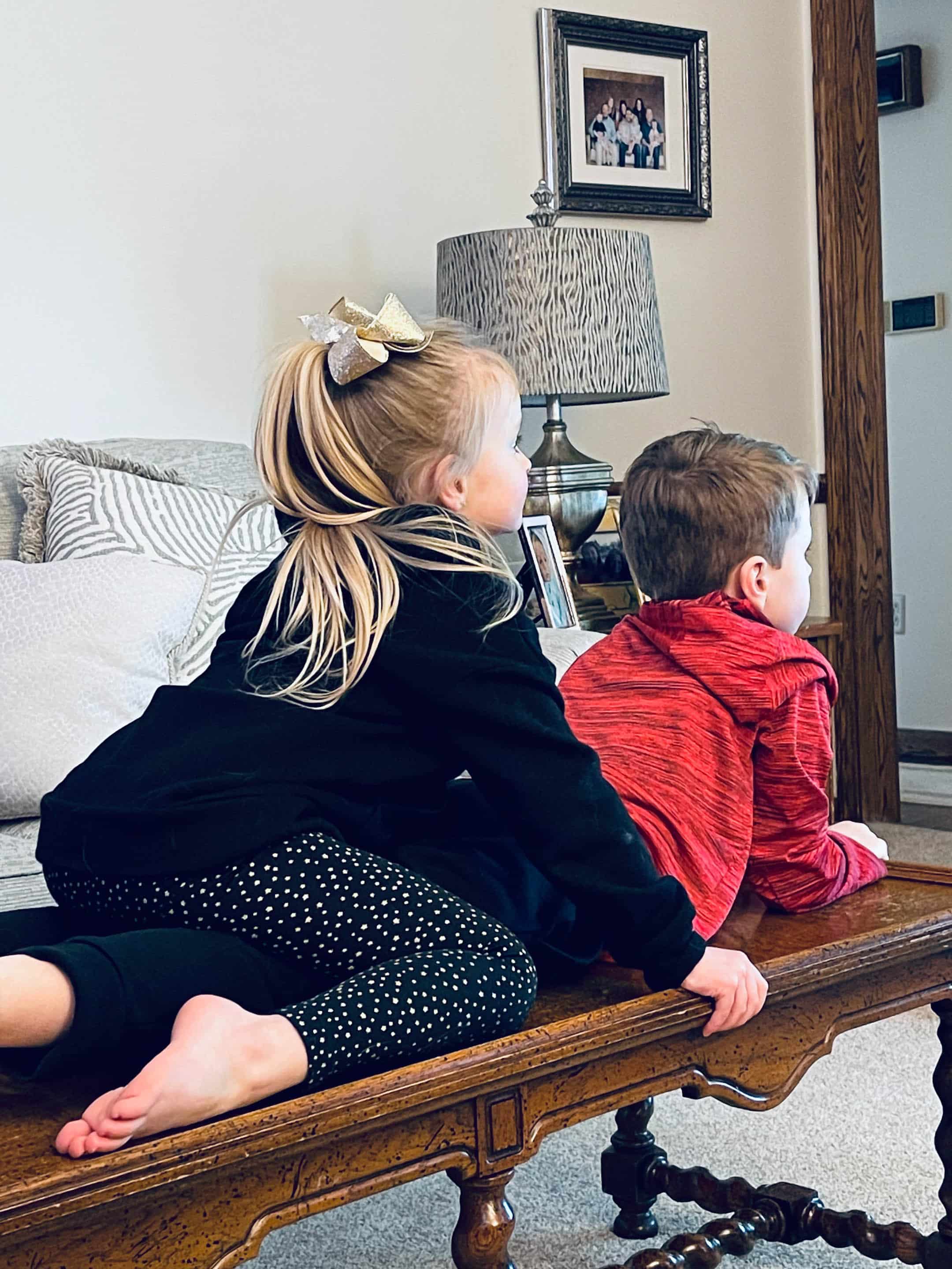 I walked into the family room at my mom’s and this is how Max and Emilia were watching TV.