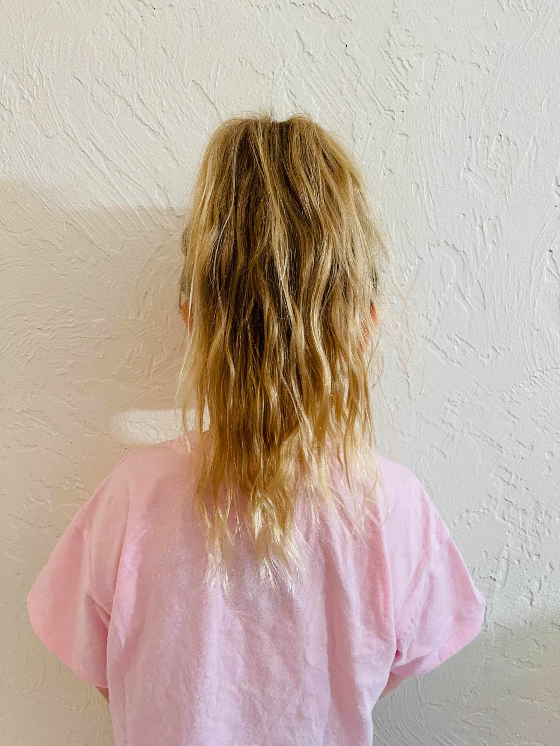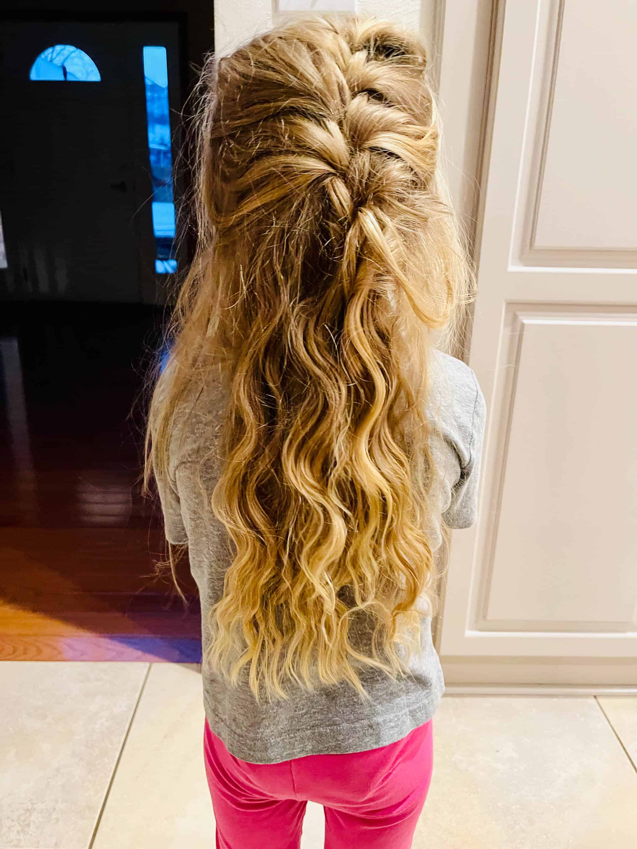 Emilia loves doing a french braid on her wet hair after her shower so she can have “mermaid waves” in the morning. This is what they looked like this week!