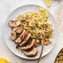 We are obsessed with this chicken with baked lemon pasta! It’s the perfect flavorful, comforting dinner that everyone loves. Add a roasted vegetable on the side and it’s the ideal weeknight meal.