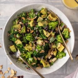 This winter broccoli crunch salad is sponsored by Florida’s Natural®. This recipe is a great way to add a pop of brightness to your chilly days! Broccoli, avocado, dried cherries and more are drizzled in a creamy citrus dressing that takes it over the top. It’s a perfect side dish!