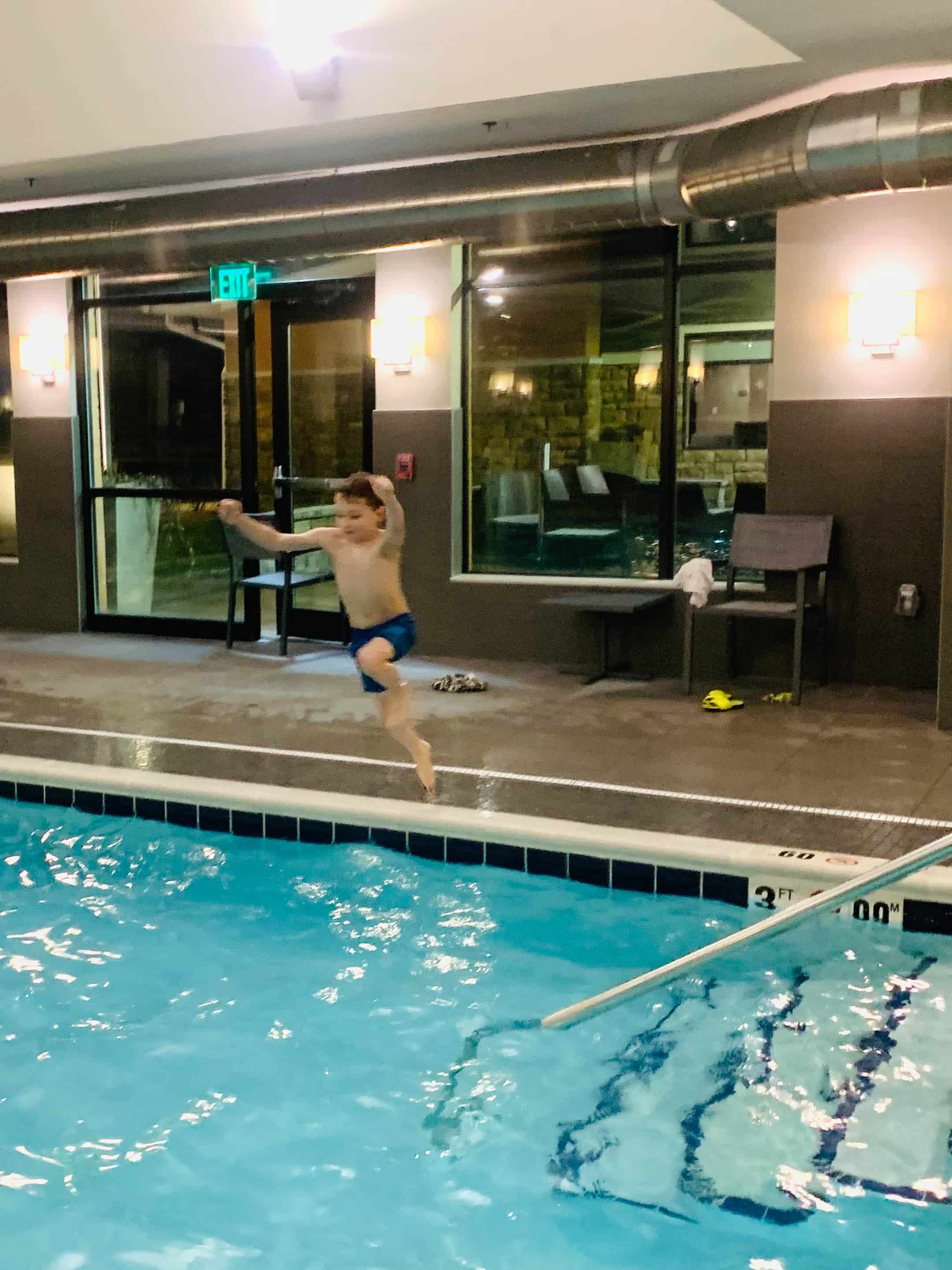 He loves staying in hotels in swimming in the pool.