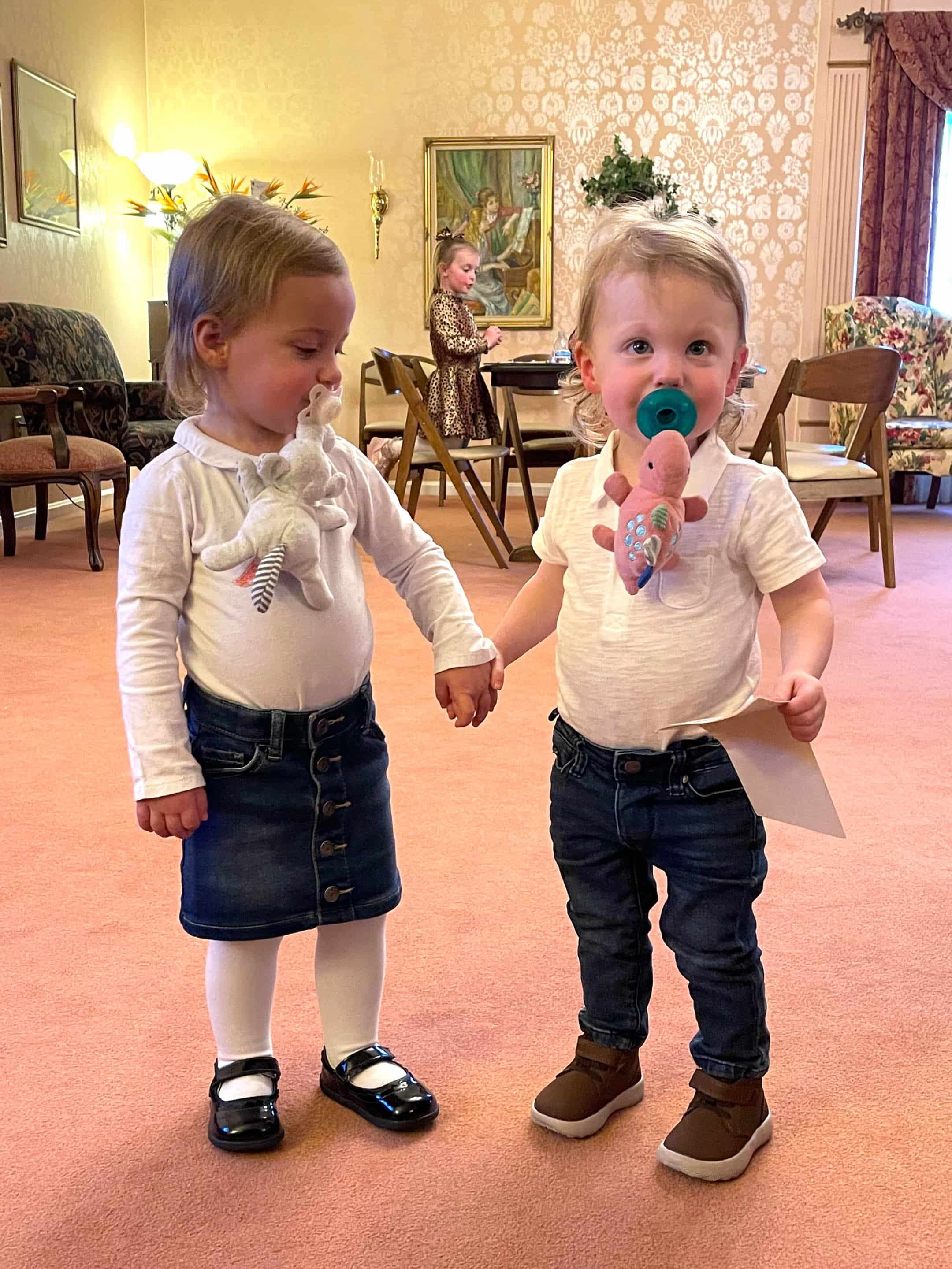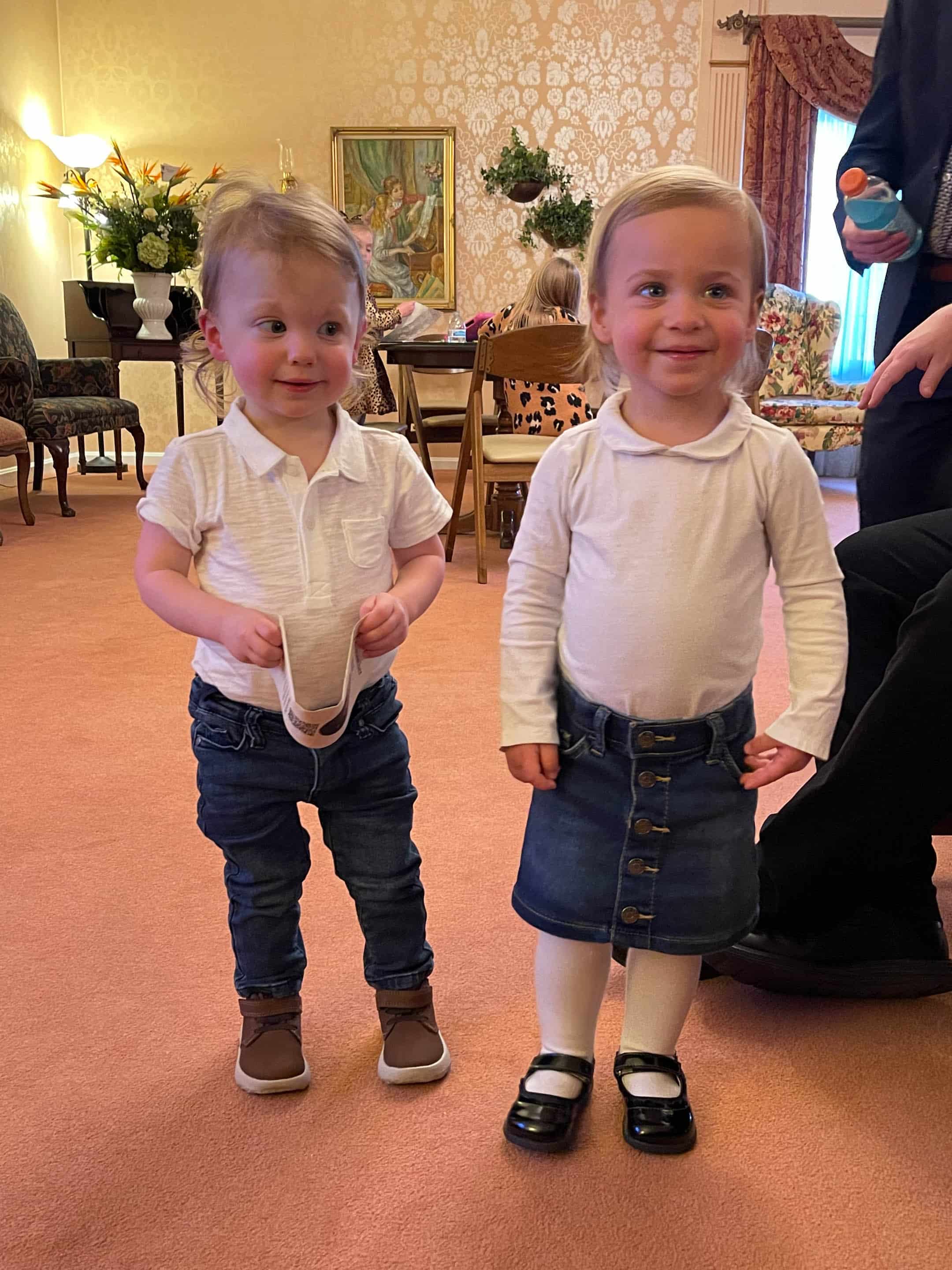 We didn’t dress them alike on purpose but they looked like twins! They are only two months apart. Also, Emilia in the background.