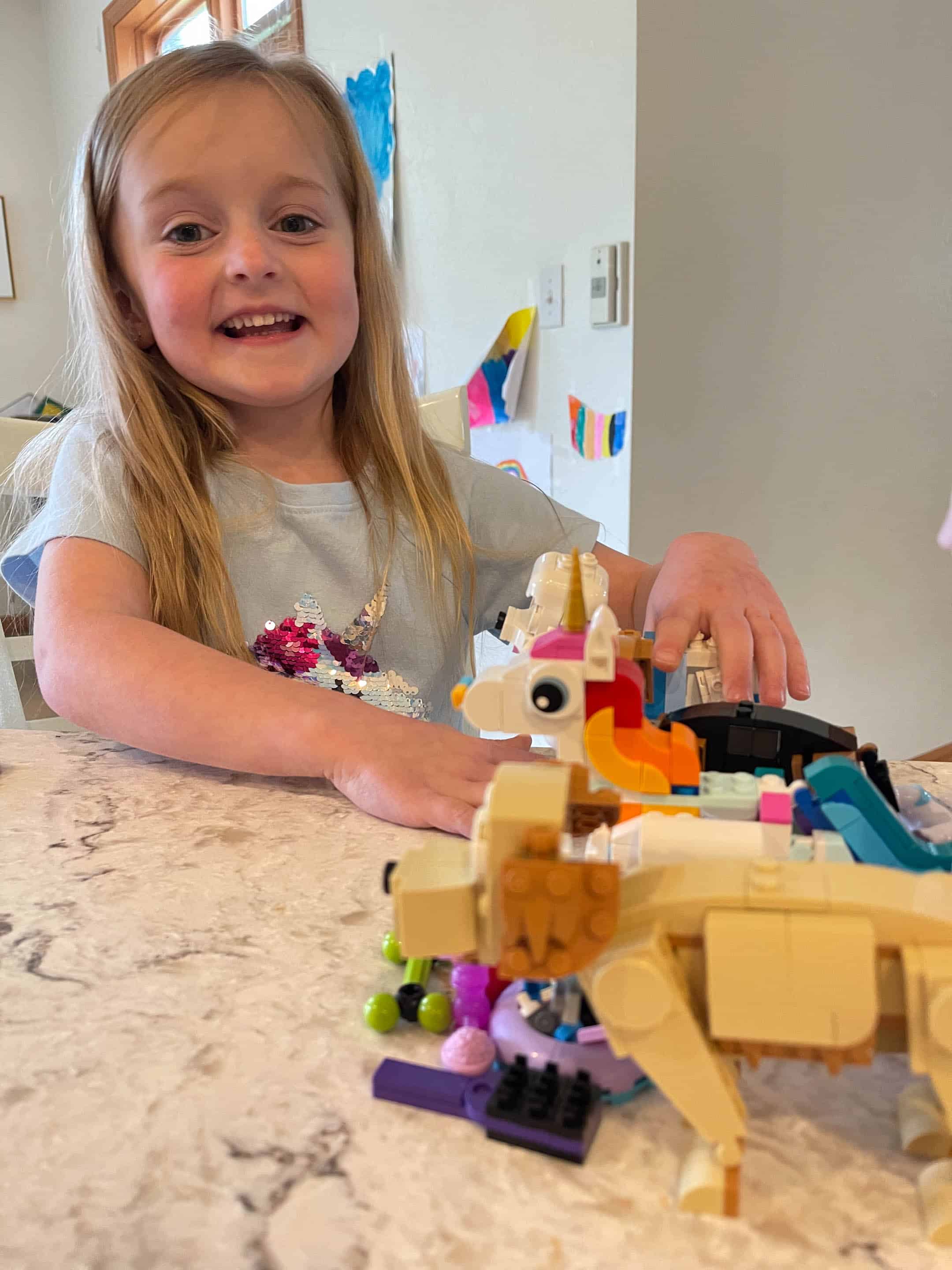 We built lots of legos. Emilia is such a pro now!