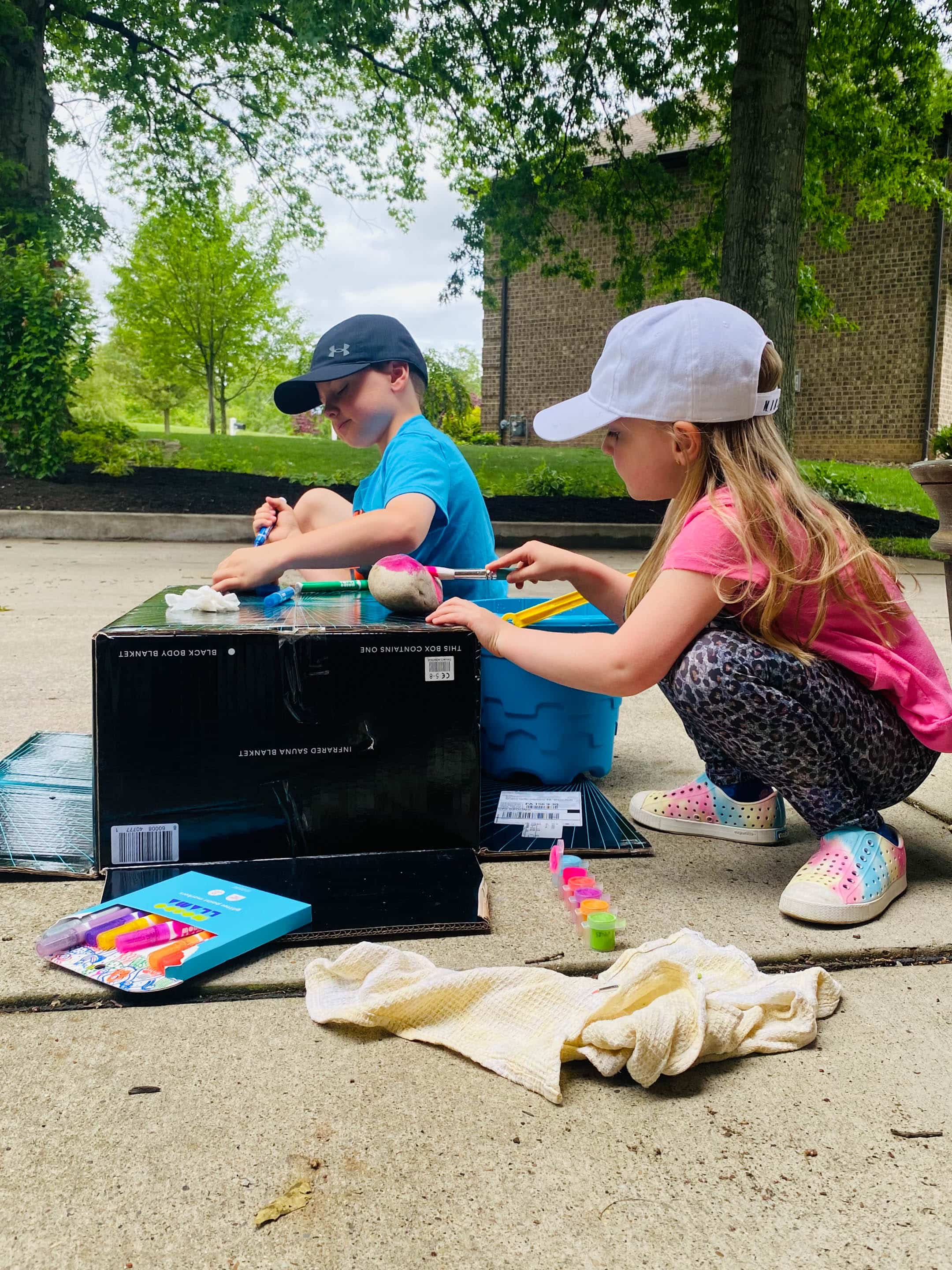 Big kids painting rocks.