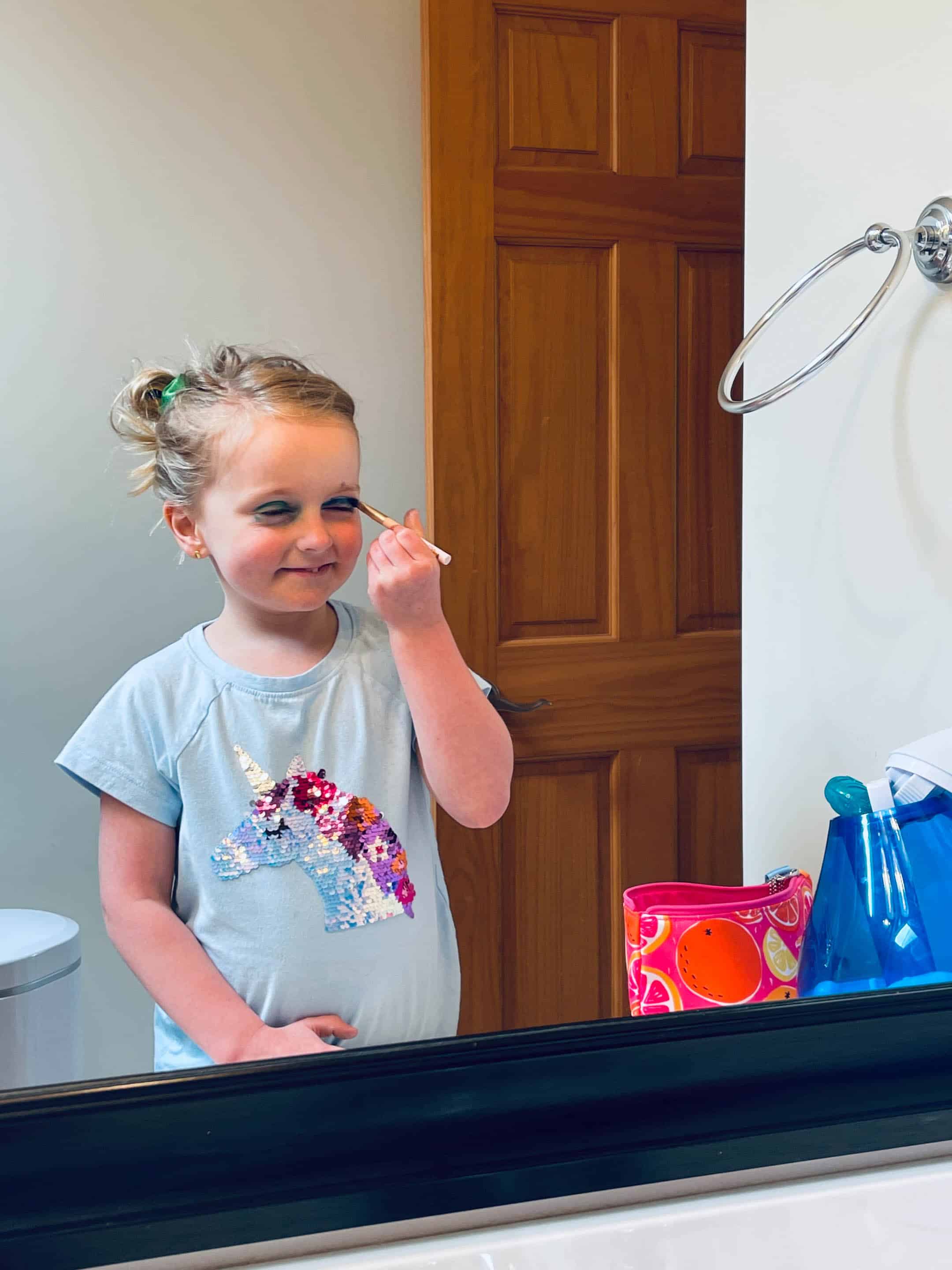 Emilia loves doing makeup but her skin is so sensitive that we don’t do it super often.
