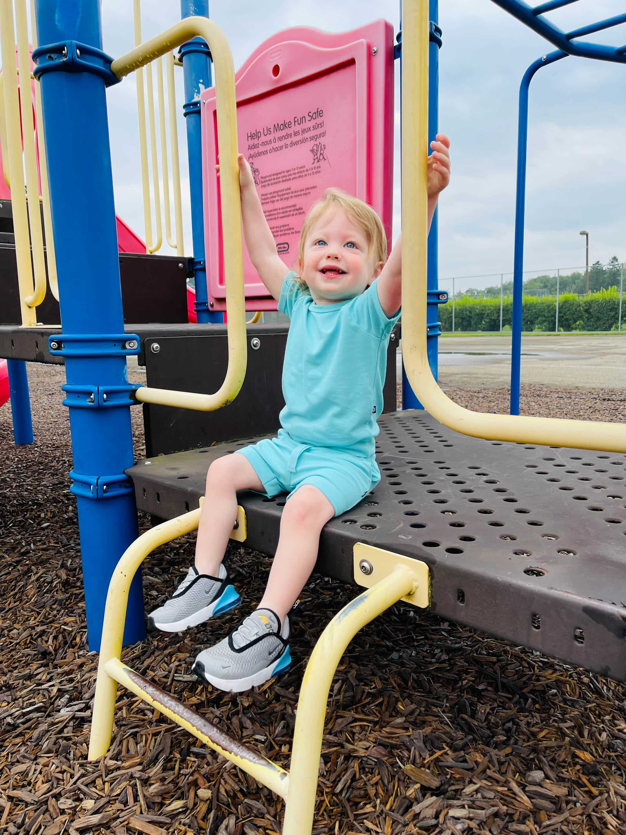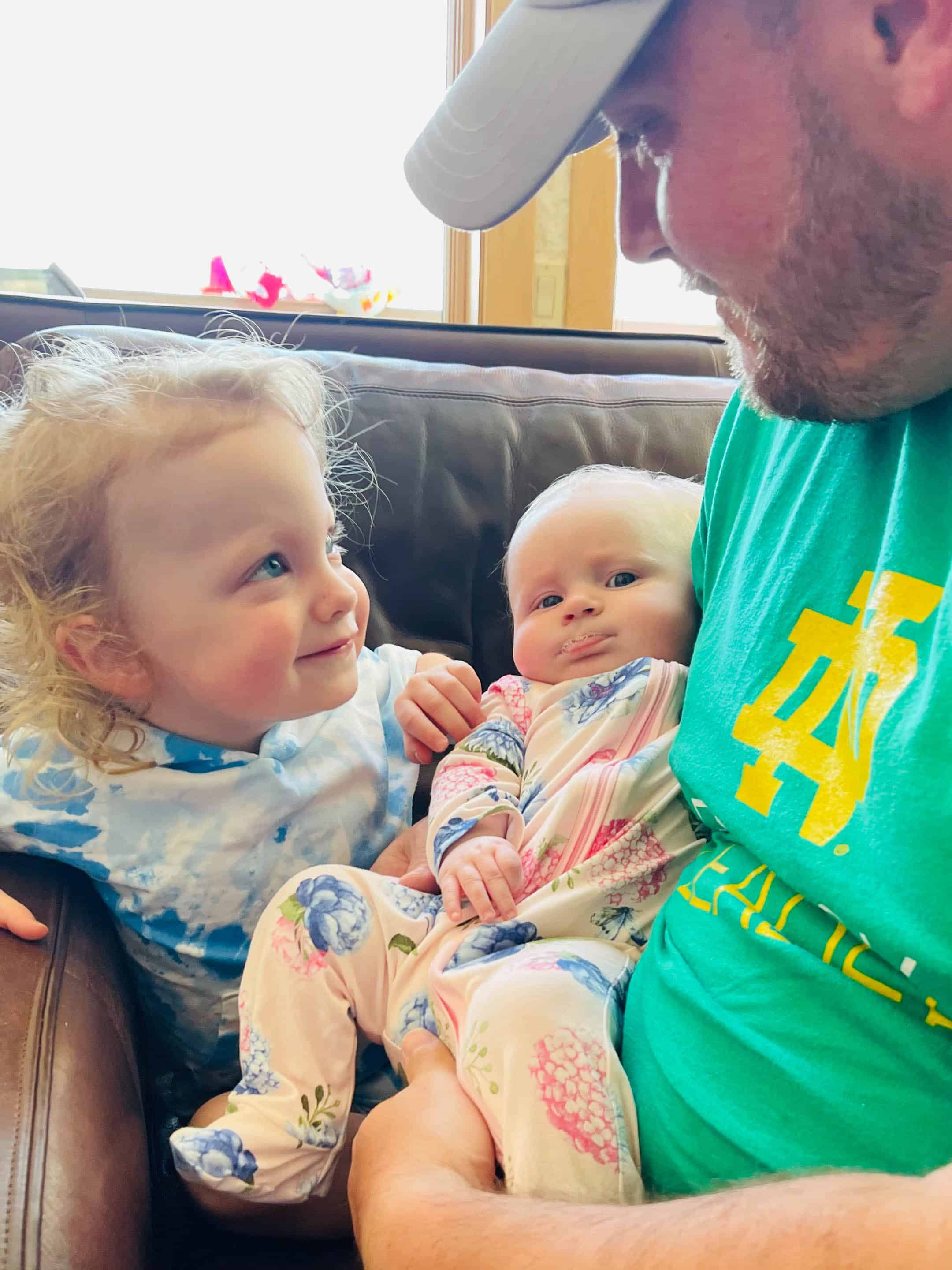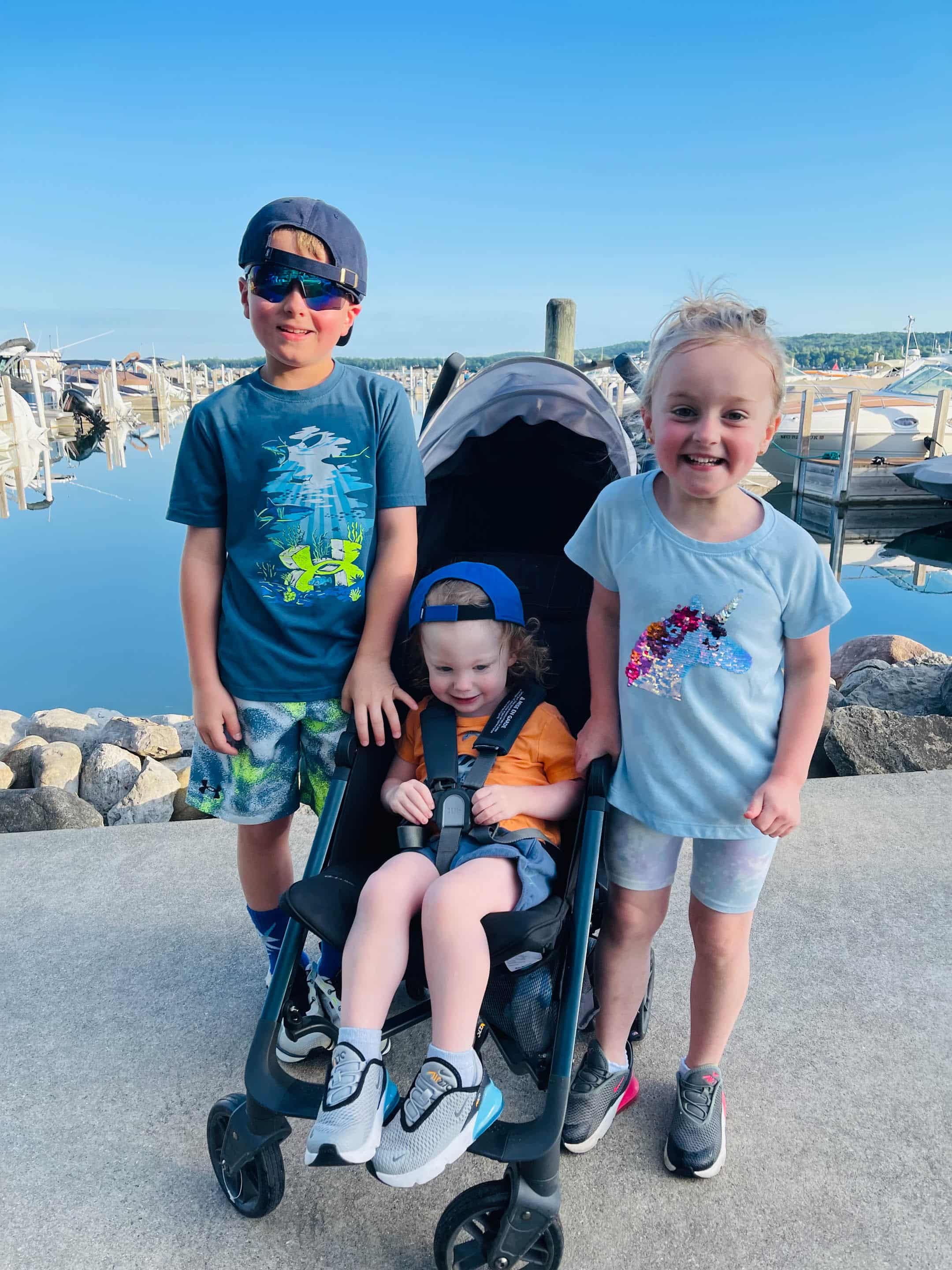 I love how Max is in a tee with shorts and the other 2 are in there pjs, he’s a big kid now! That is such a great pic of Emilia. Also love the one with all three with Jordan in the stroller, Max looks so grown up and Emilia just looks so excited!