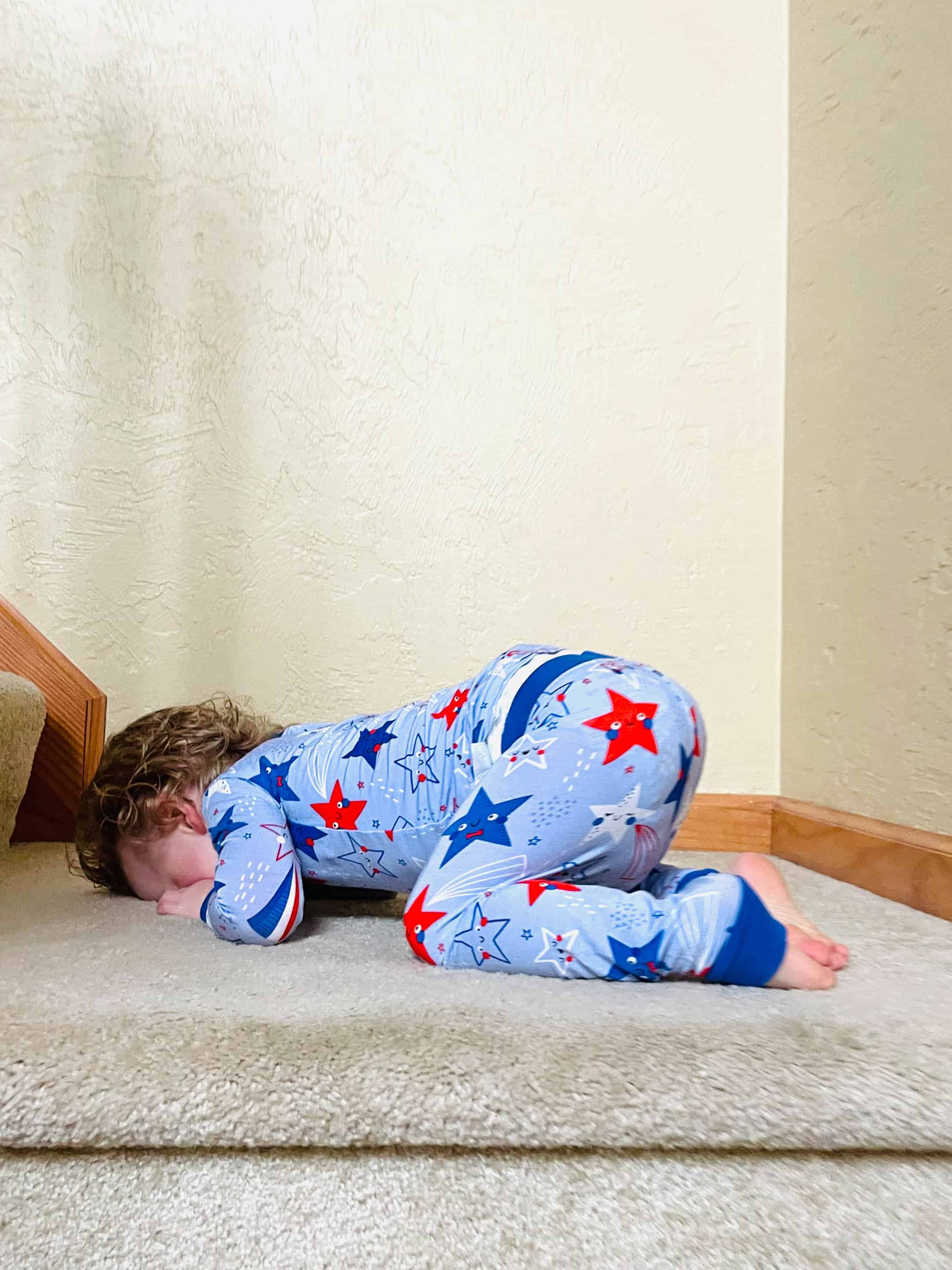 First, I love that he does this to “hide” from us. He thinks he is playing hide and seek here. It’s my fave.