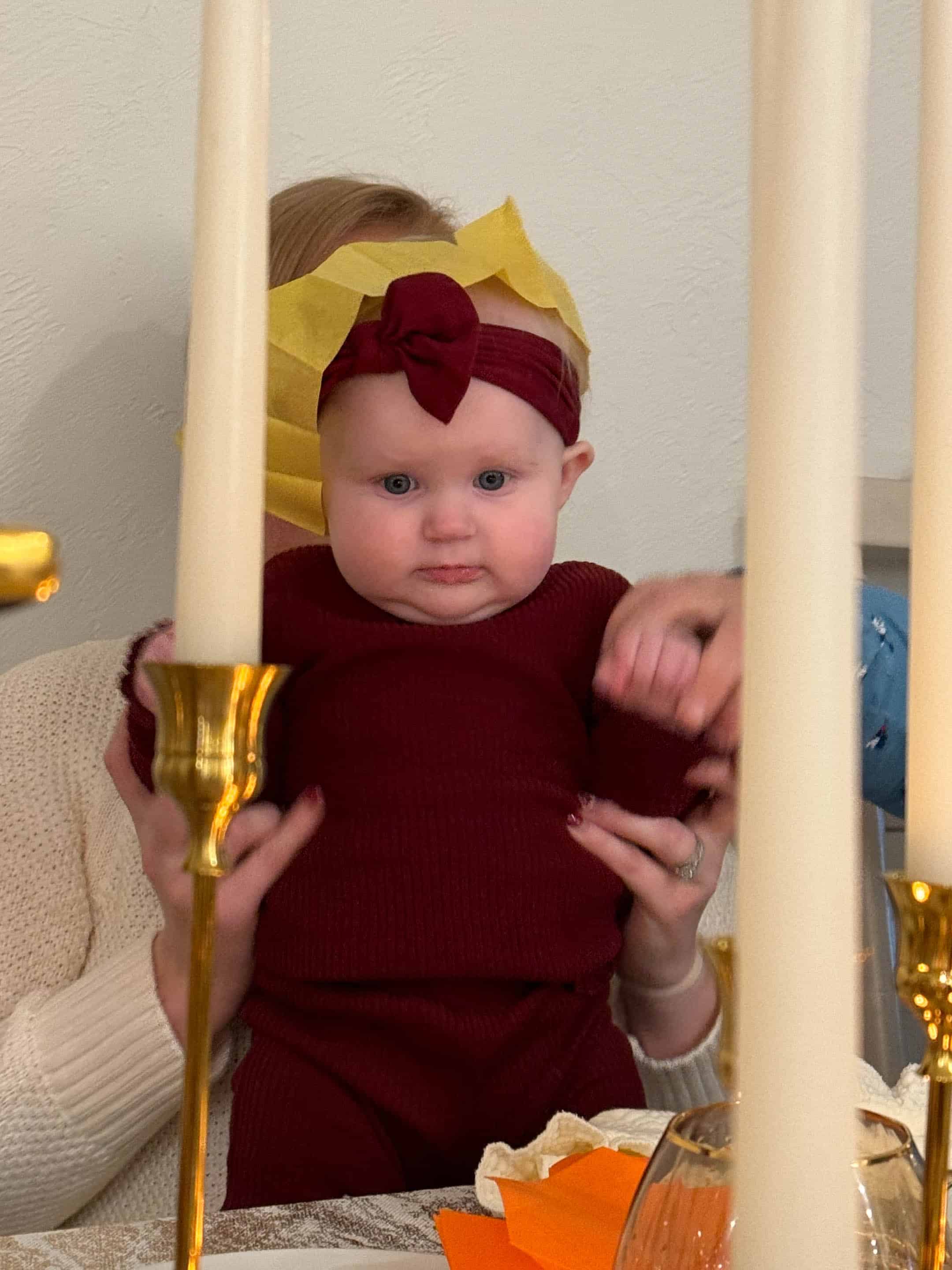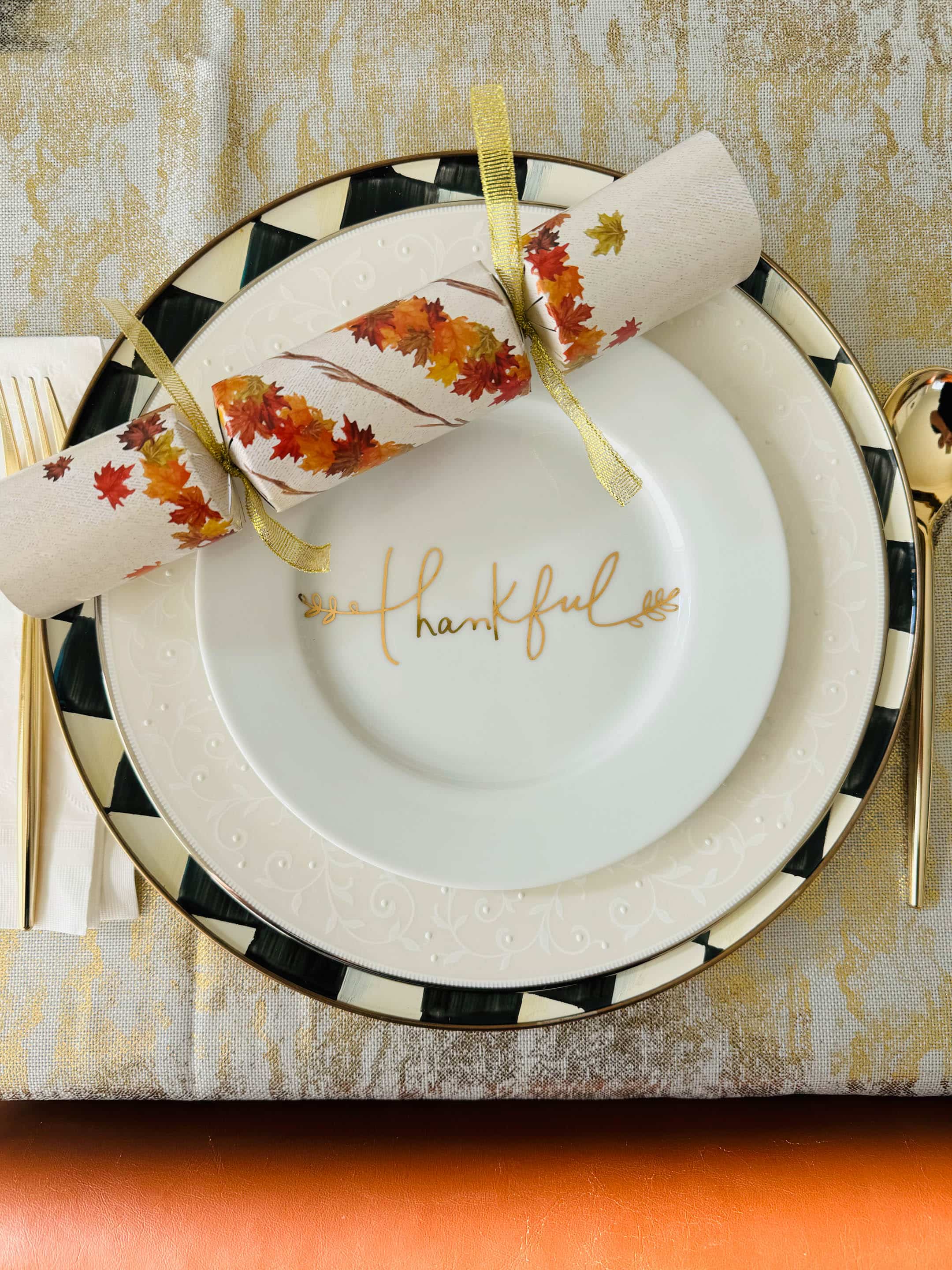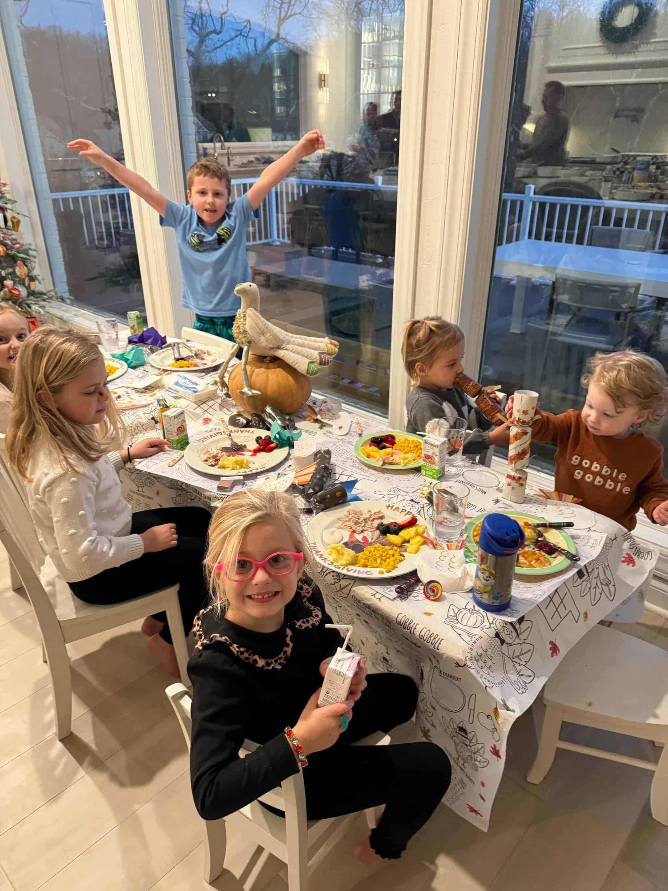 I really struggled with the table this year! We don’t have a dining room in our new house. I was very sad about no dining room all weekend, even though Thanksgiving is literally the only day I ever use it. Even other holidays and birthdays are more casual.