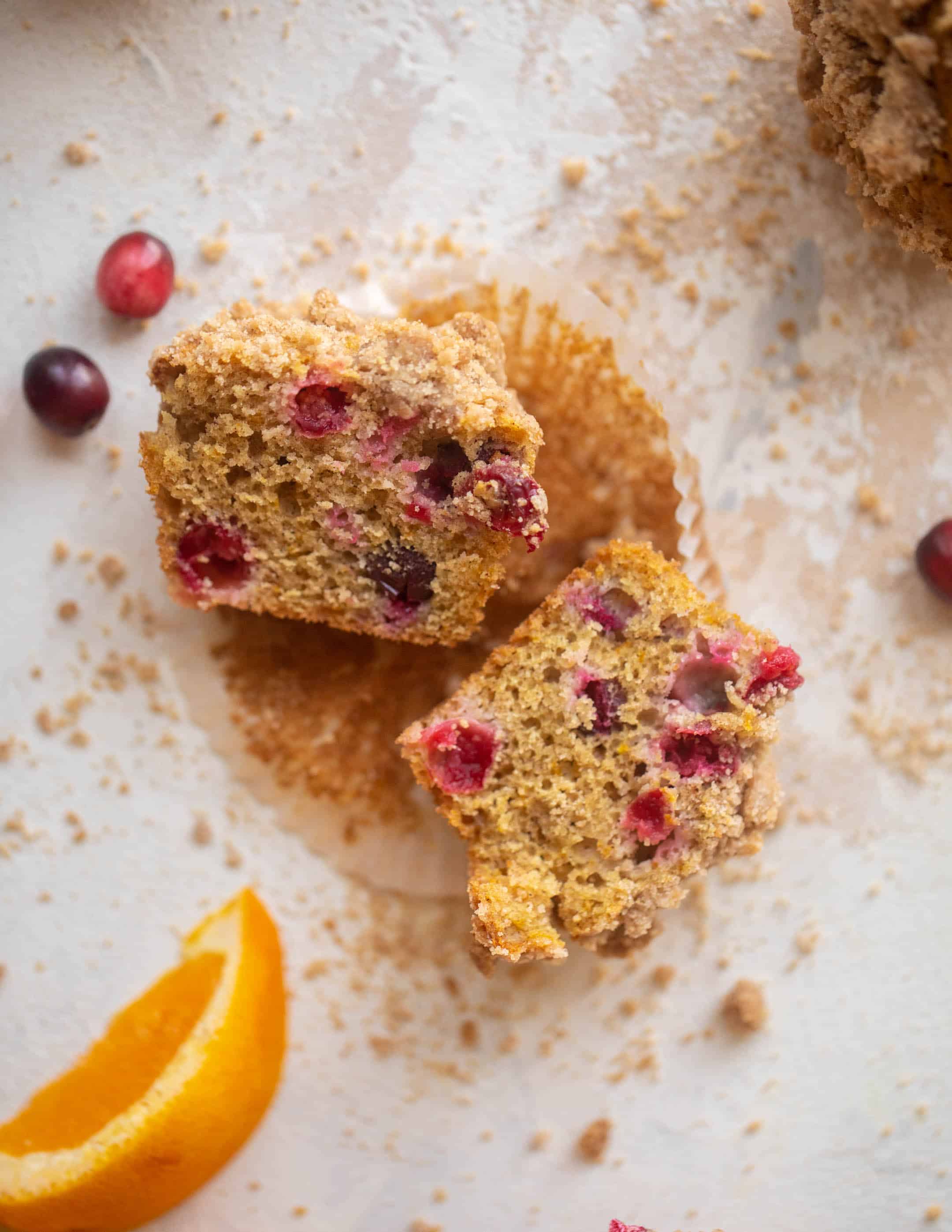 These cranberry orange muffins are a holiday dream! Tart, bright cranberries mixed with tangy orange zest and a crumb topping – they are fluffy and soft with a crunchy top!
