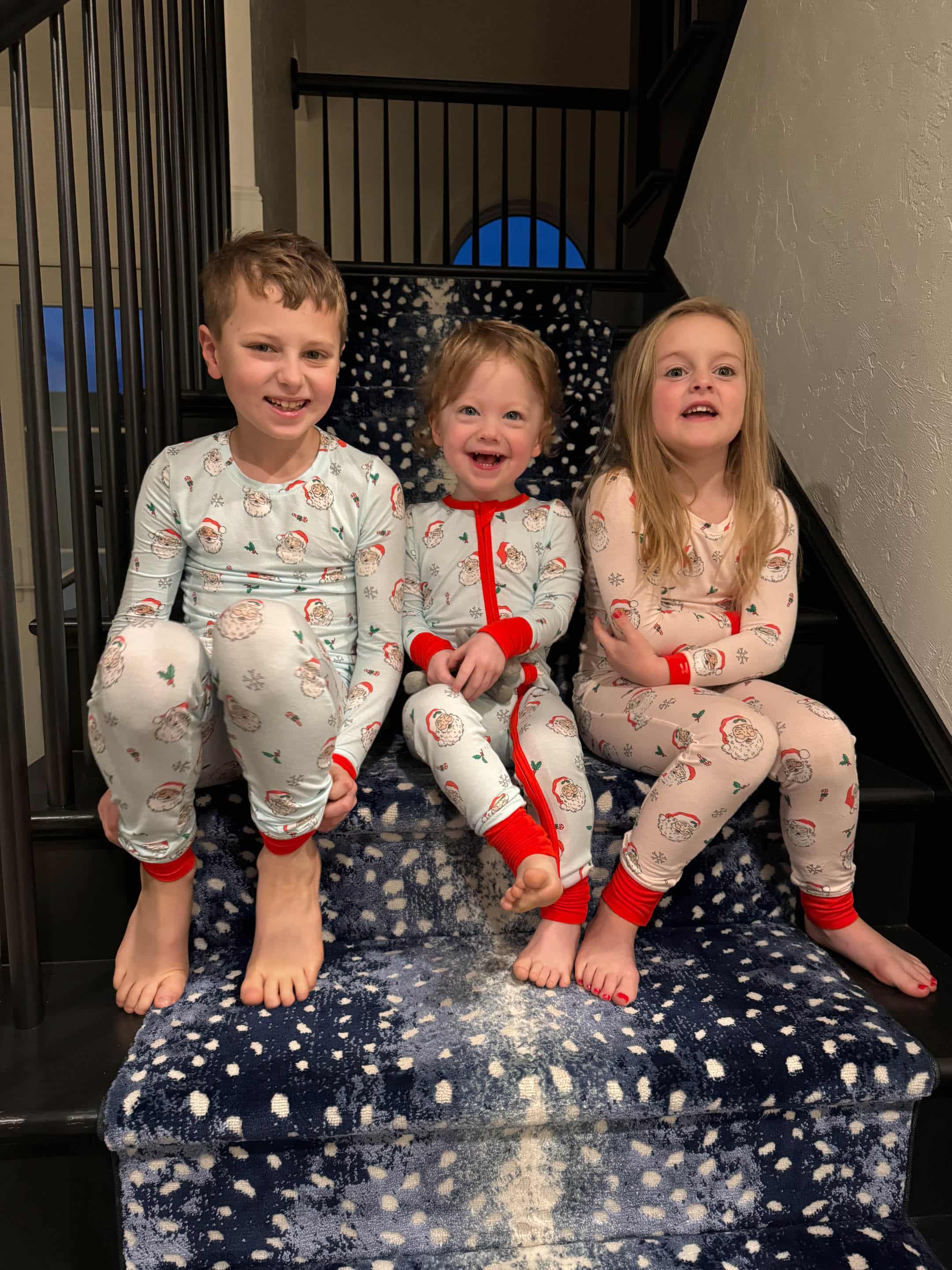 Happy Holidays. Great pictures of your beautiful family. Thanks for sharing as it brings back memories of my three littles (now adults) and the excitement that was Christmas. I want Jordan’s pizza tree shirt in an adult size! LOL.