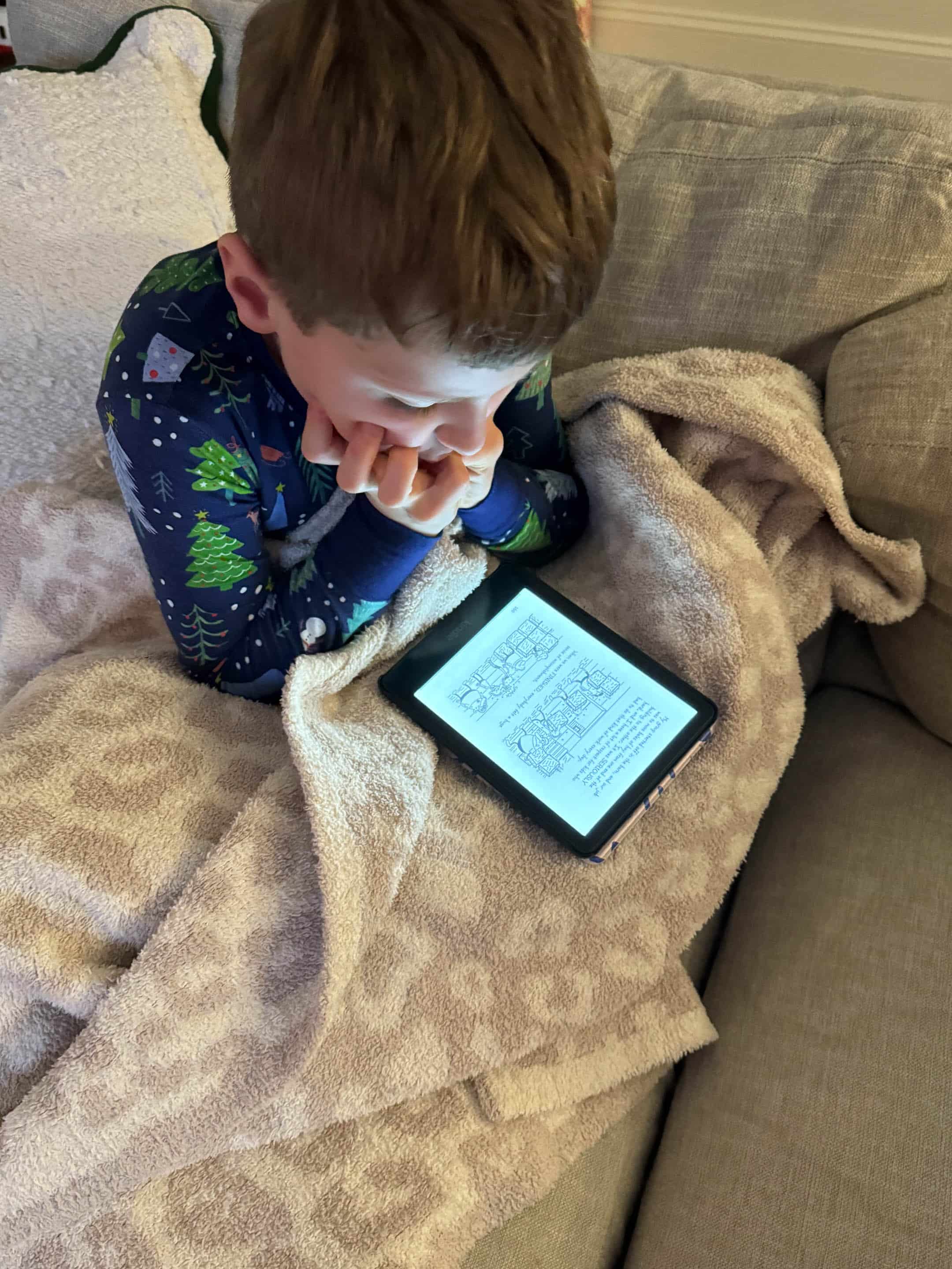 Max got a kindle for christmas and when I tell you I didn’t think he could possibly read more… oh my gosh. He is reading NONSTOP every day. Right now reading through the whole diary of a wimpy kid series (which he has even already read! haha.).
