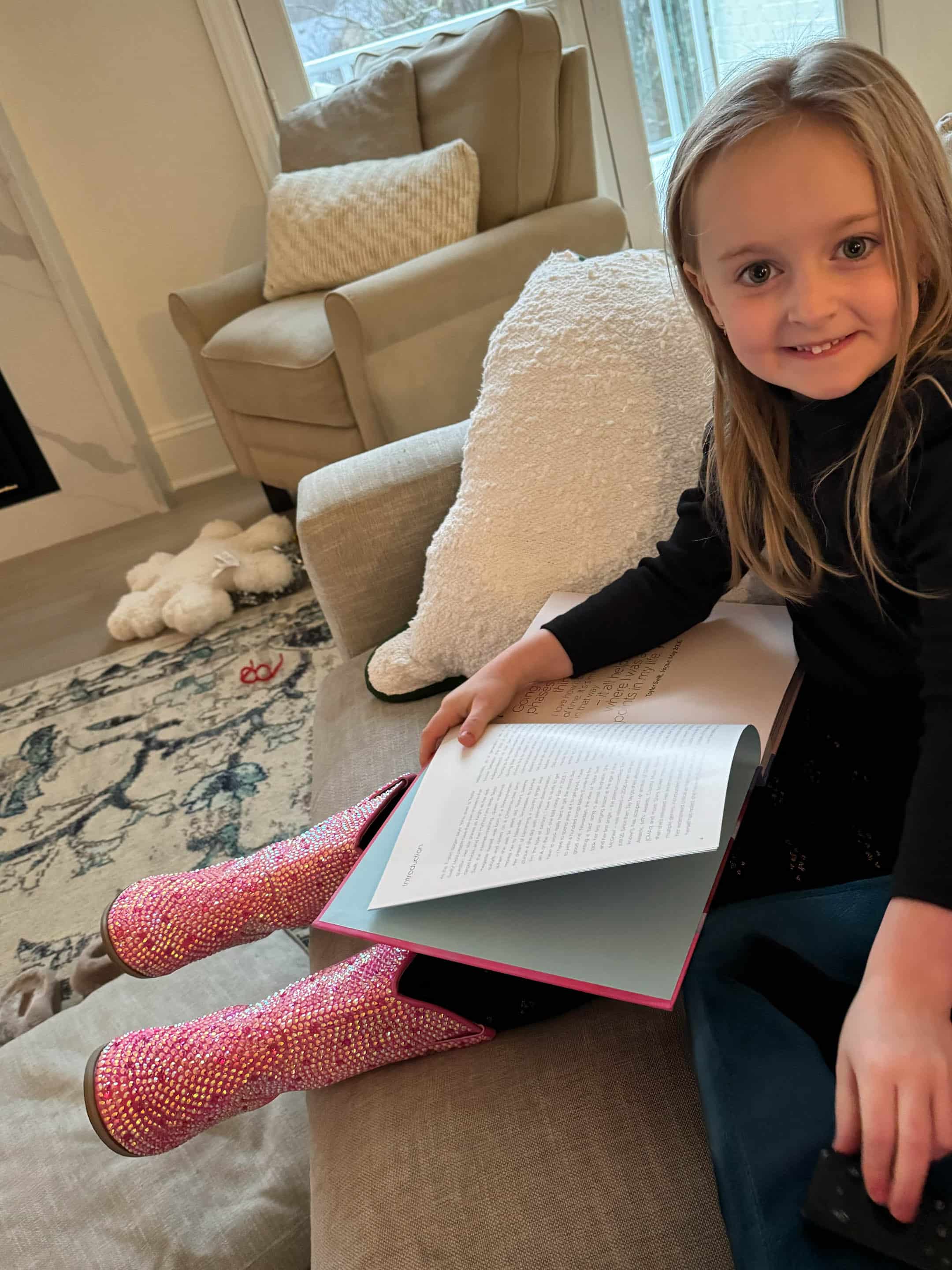 My parents also got Emilia a book on Taylor Swift’s eras tour outfits. So now she calls these her taylor swift boots! We rented the movie and watched it and she looked through her book the whole time.