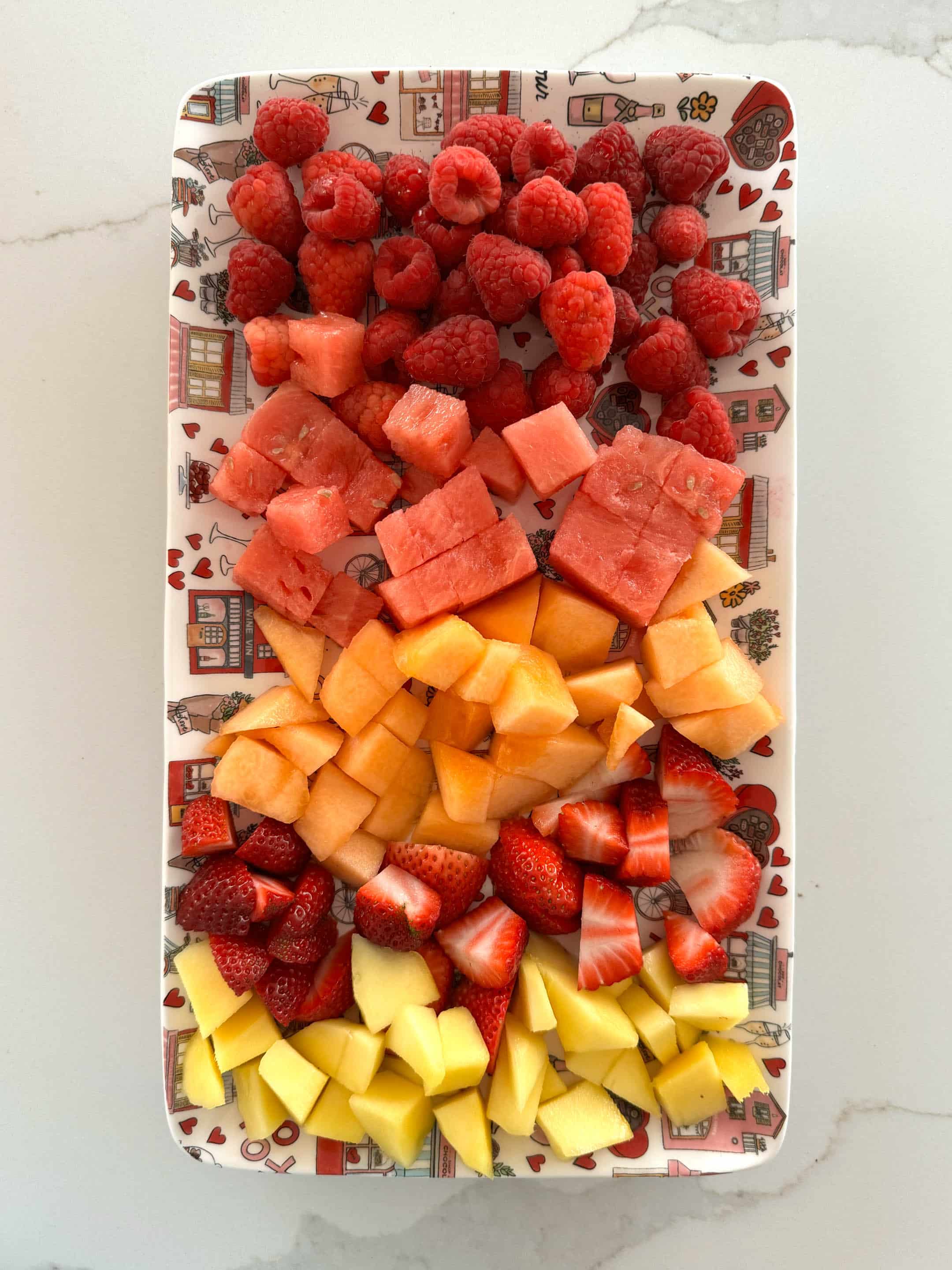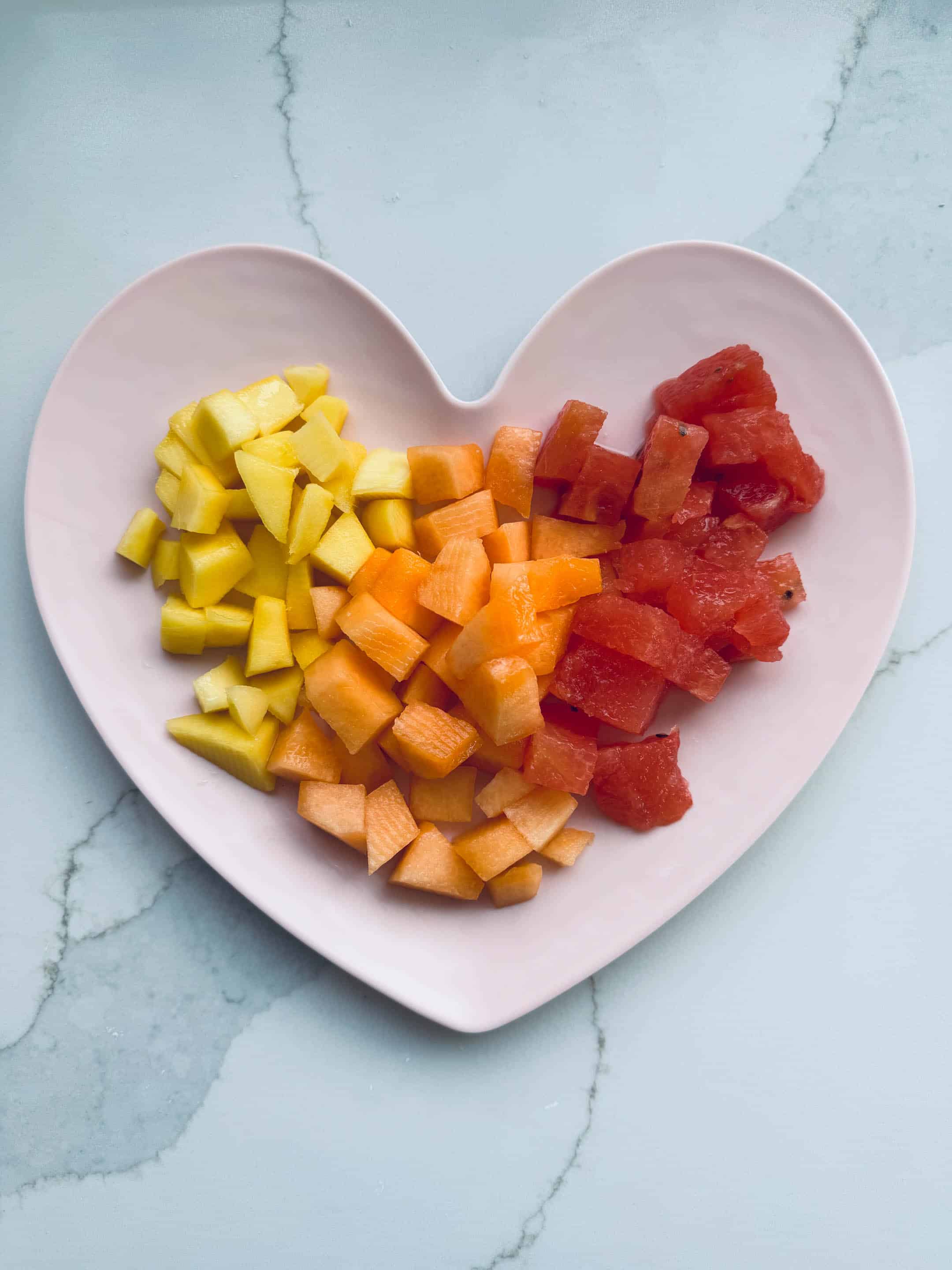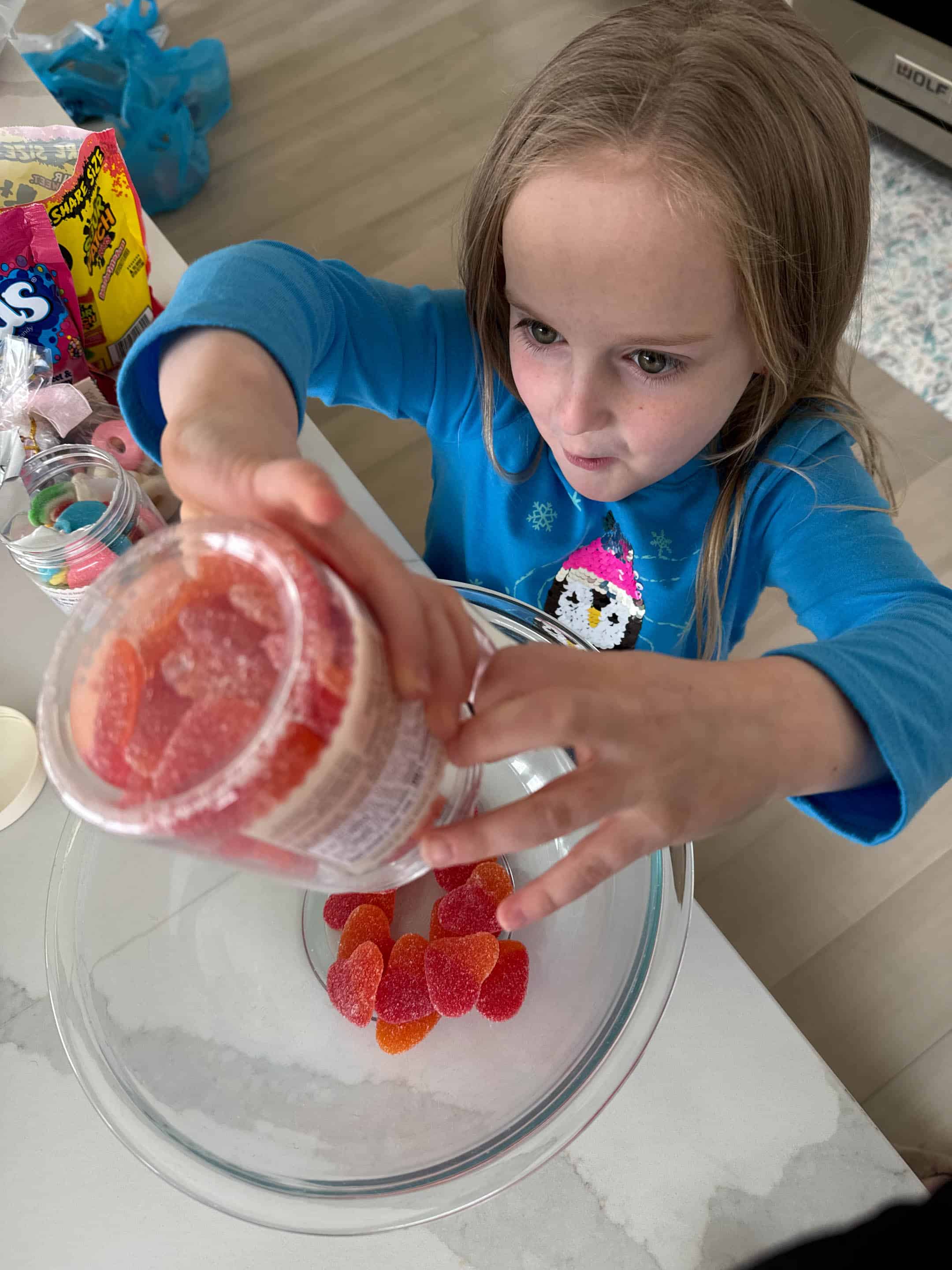 Emilia and I made a candy salad for super bowl party/valentines day. She ADORES gummy candy.