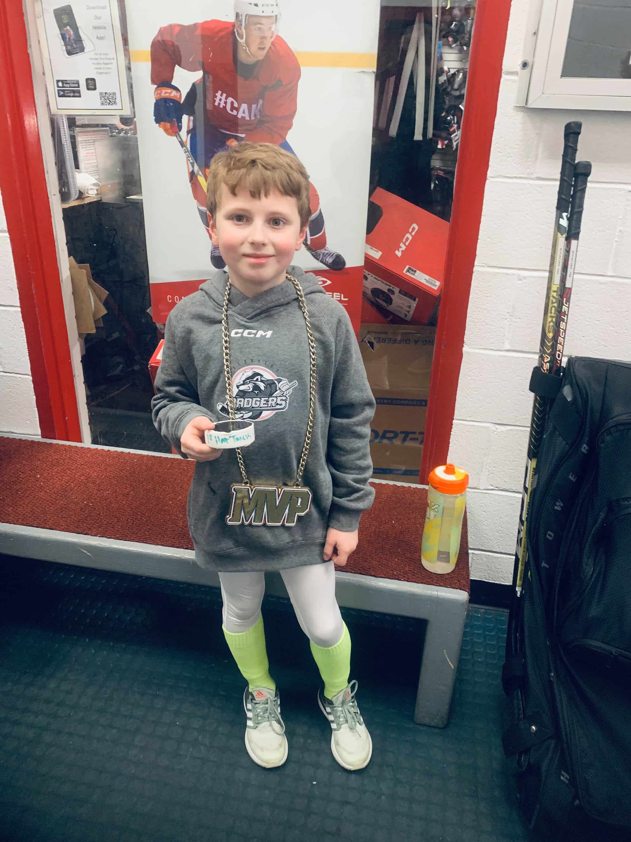 This morning, Max had a hockey game. He had a HAT TRICK!!! Woohoo!!!
