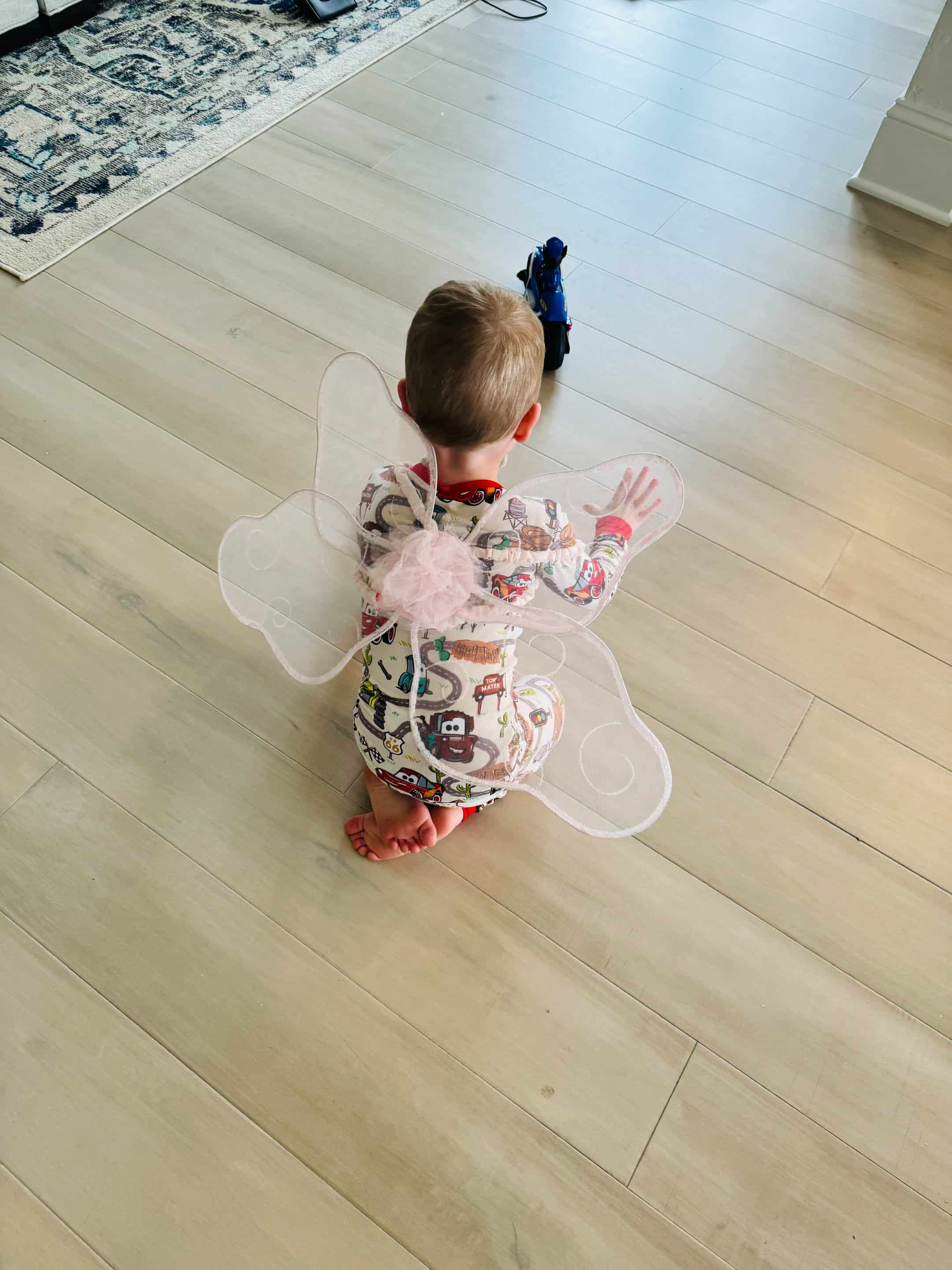 Jordan is obsessed with bugs, so when he found Emilia’s halloween fairy wings from a few years ago… game on.