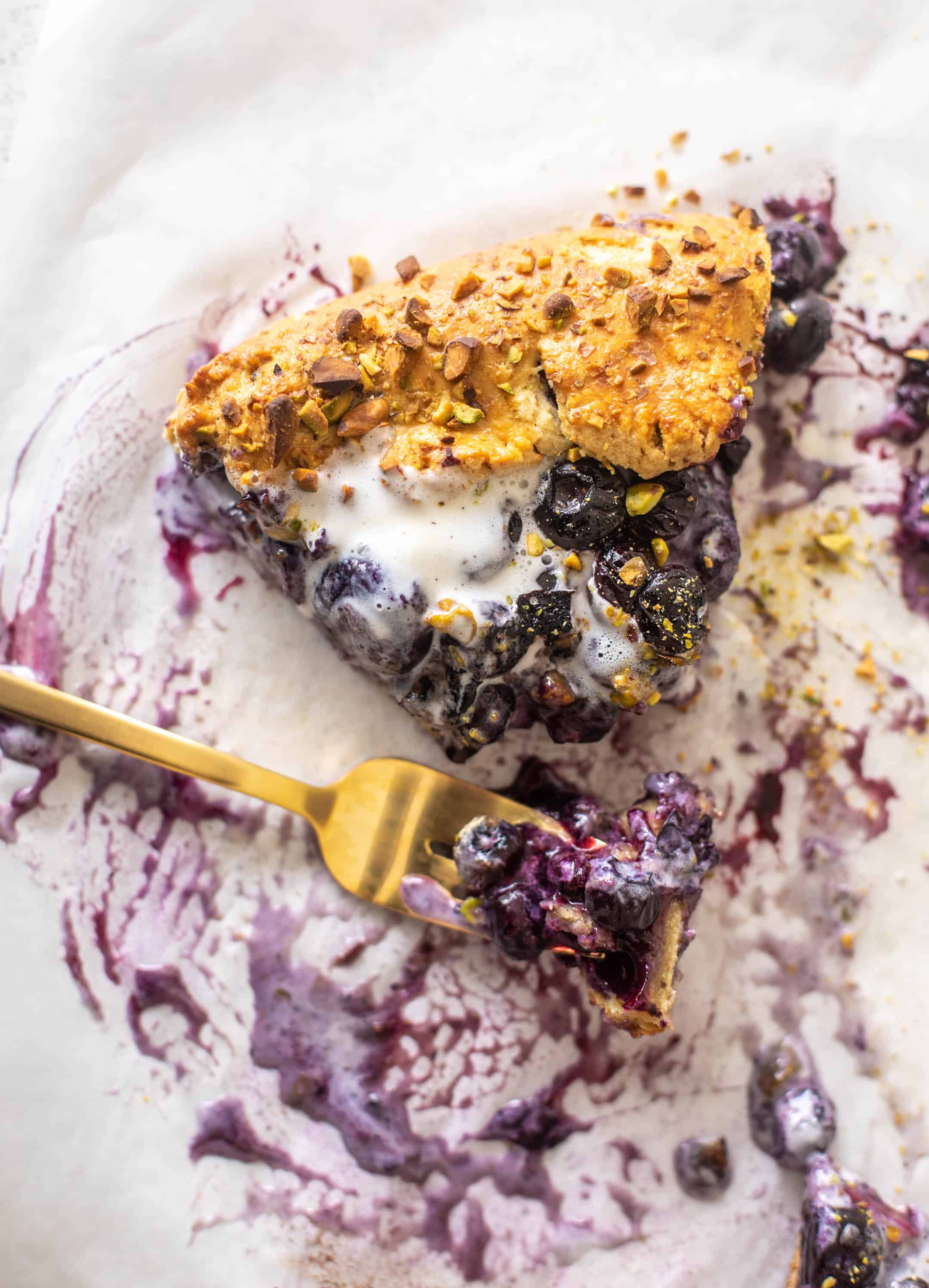 We love this blueberry pistachio galette! A pistachio pie crust filled with fresh blueberries and baked until juicy and bubbly and hot, topped with vanilla ice cream. Summer is the best!