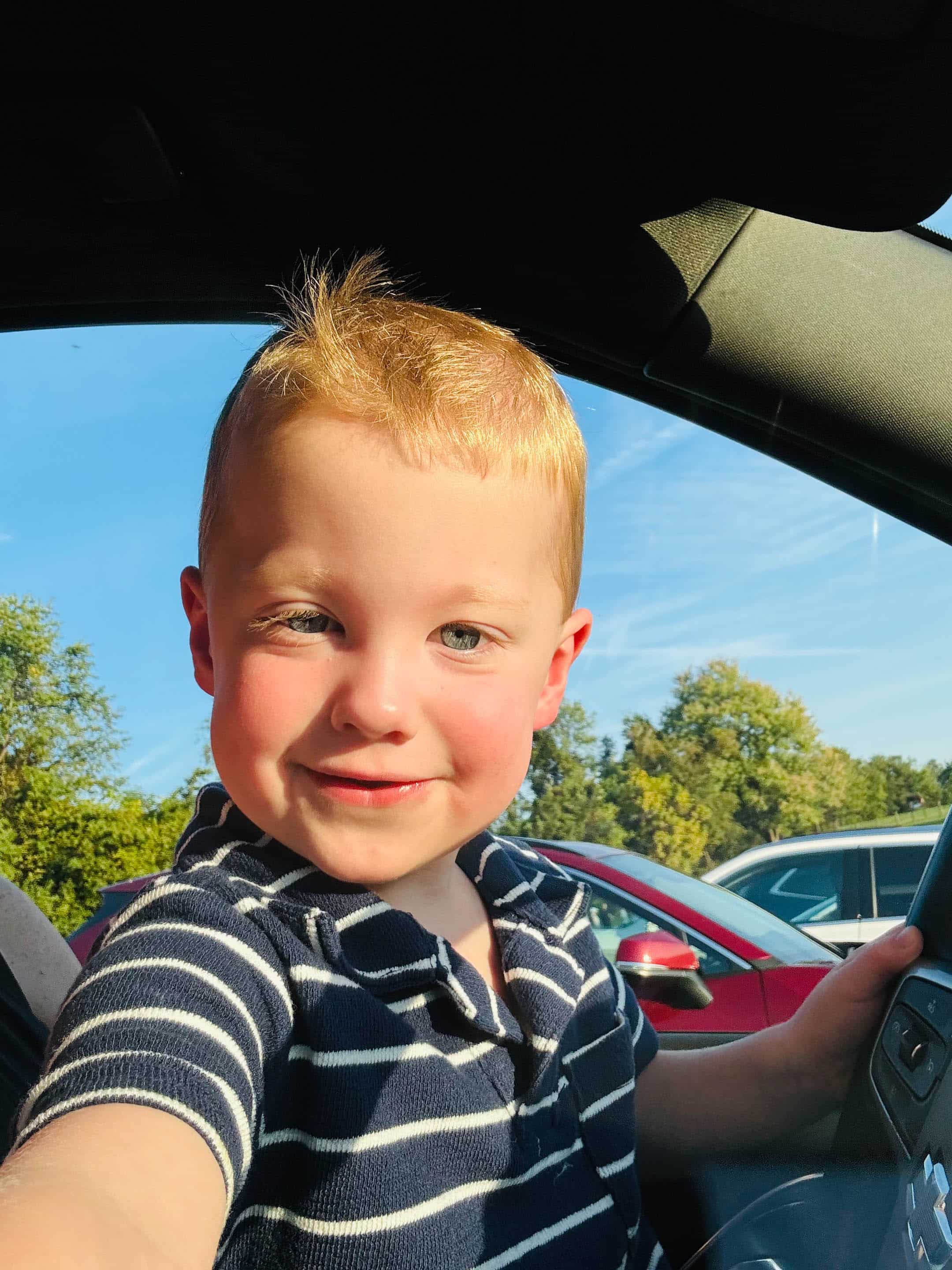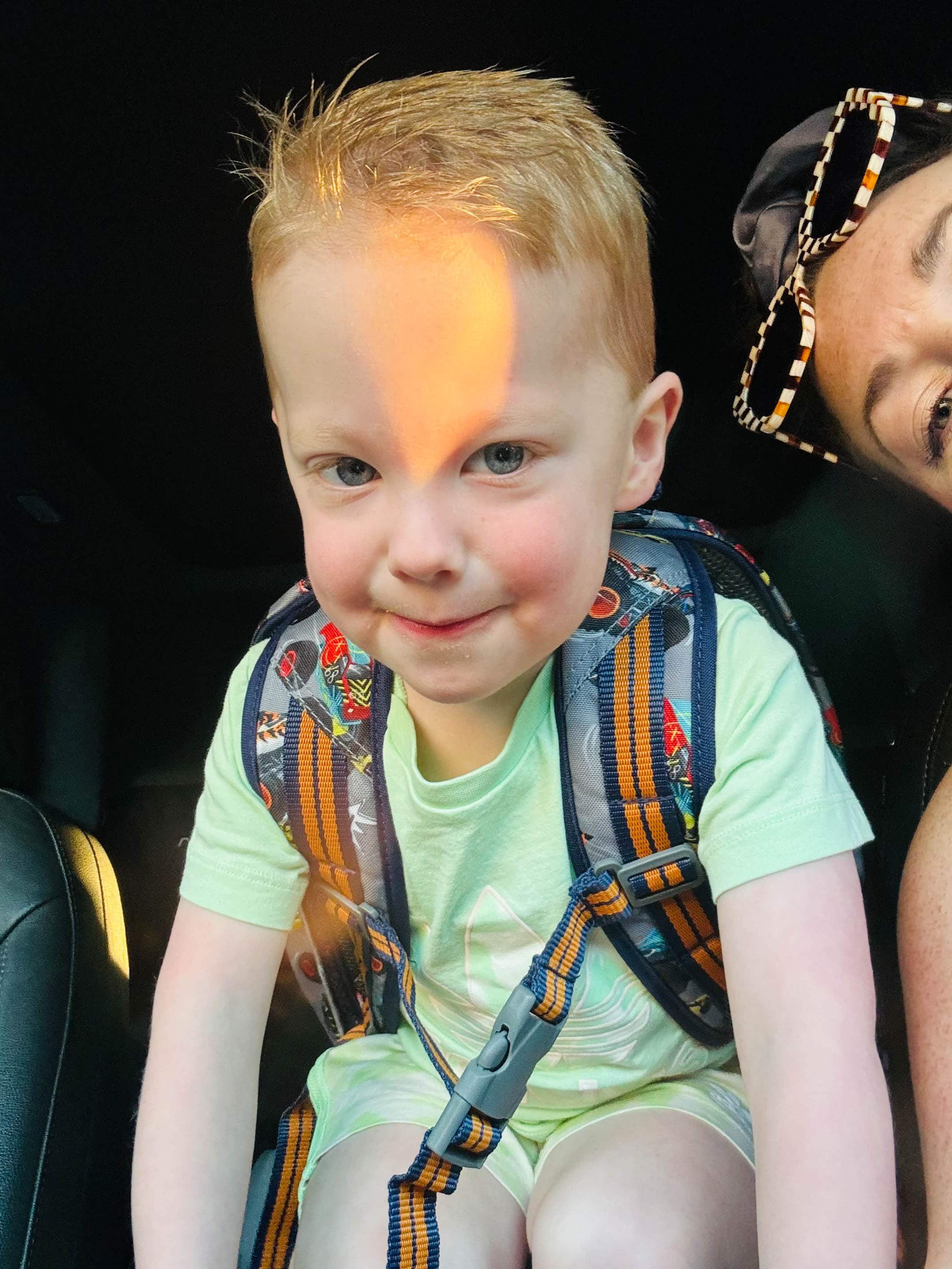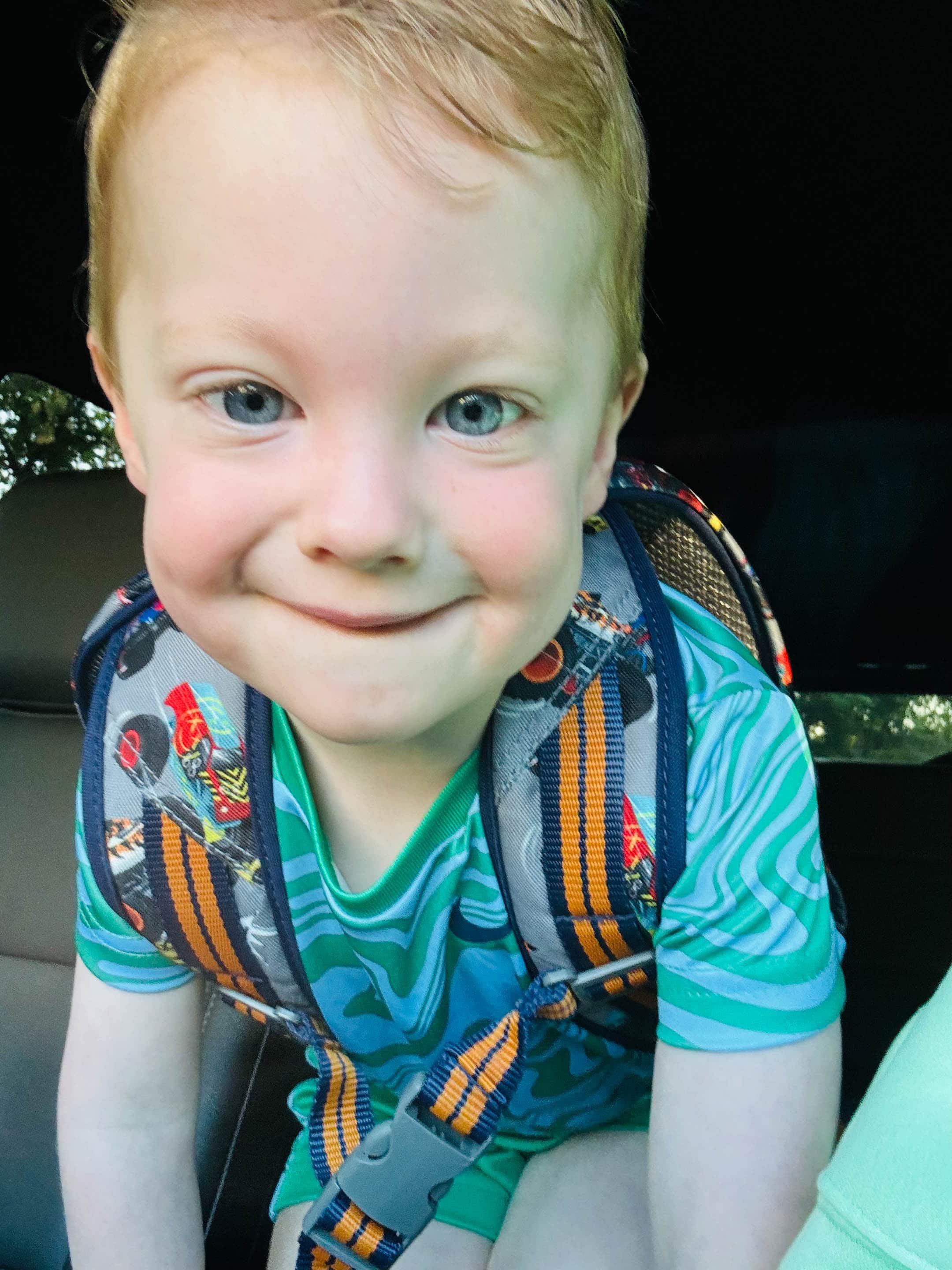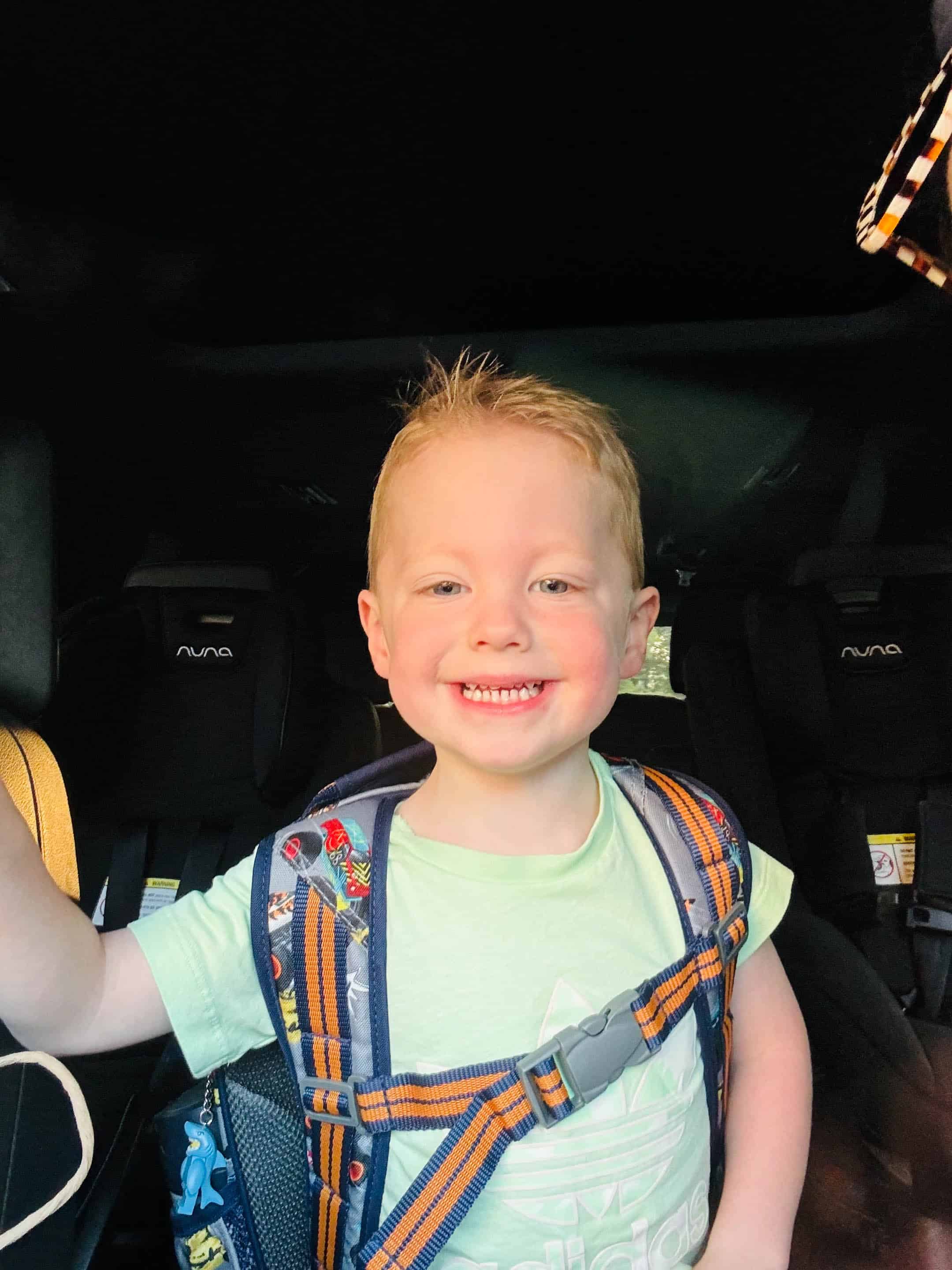 Very excited for school drop off.