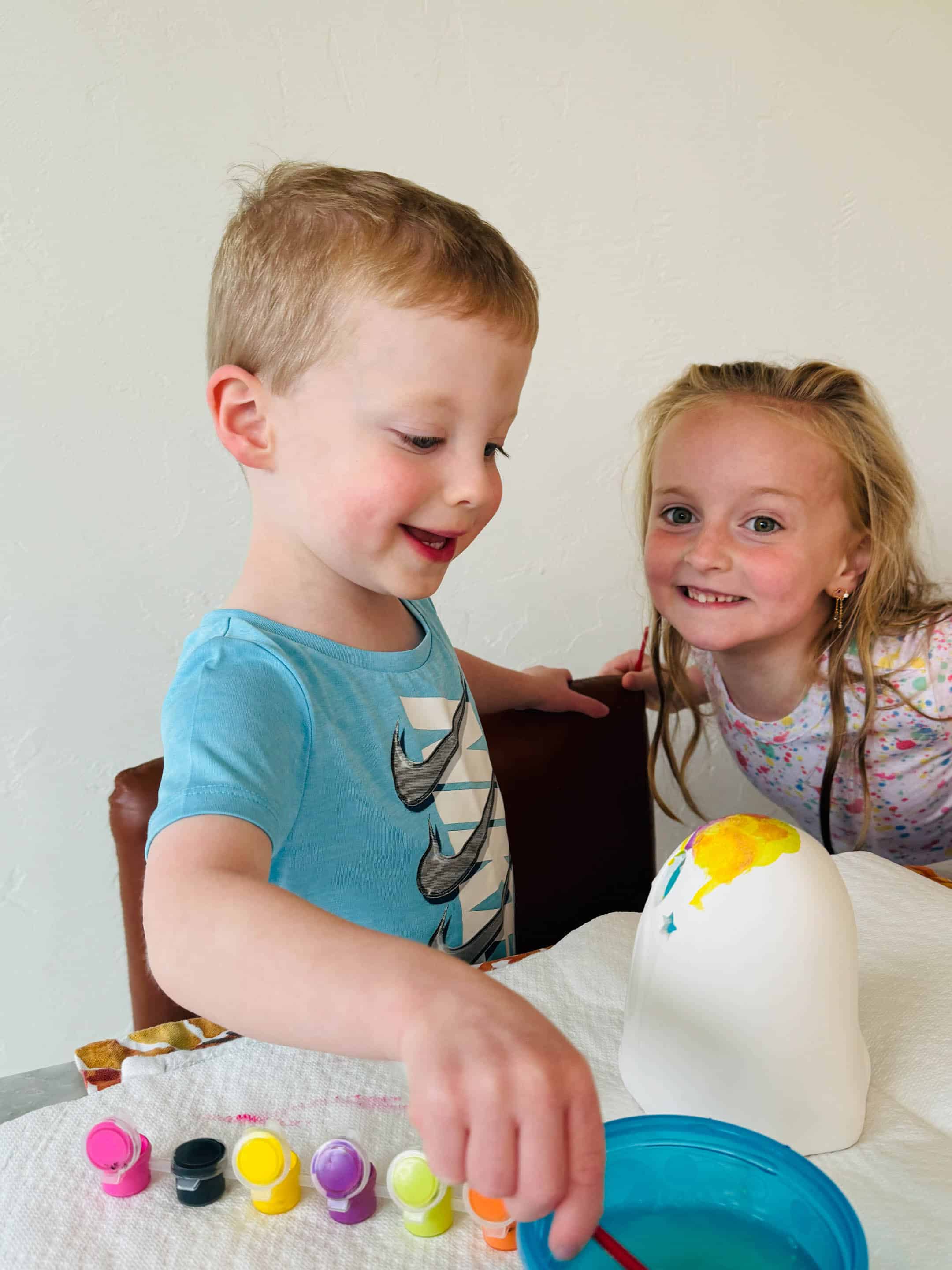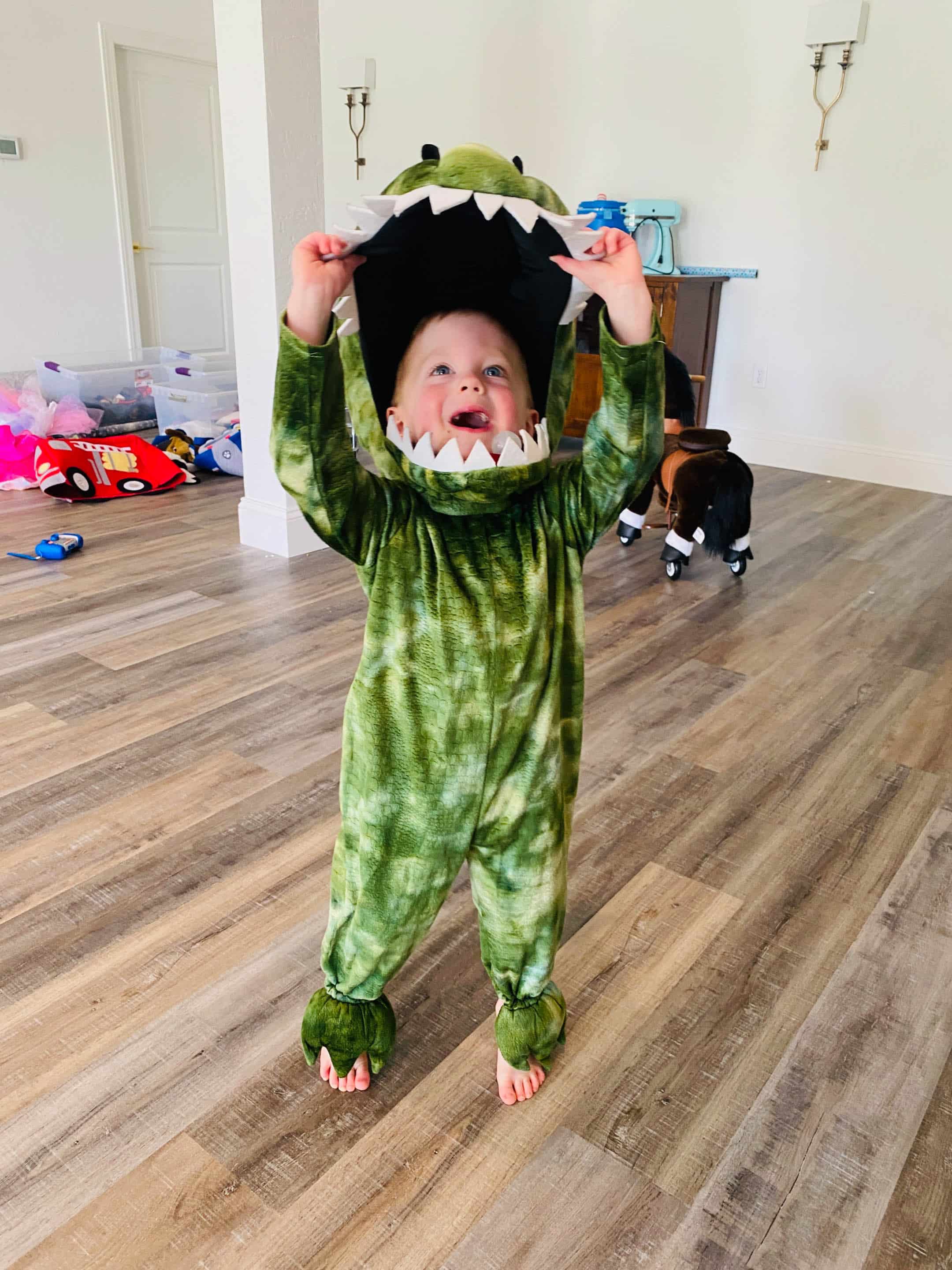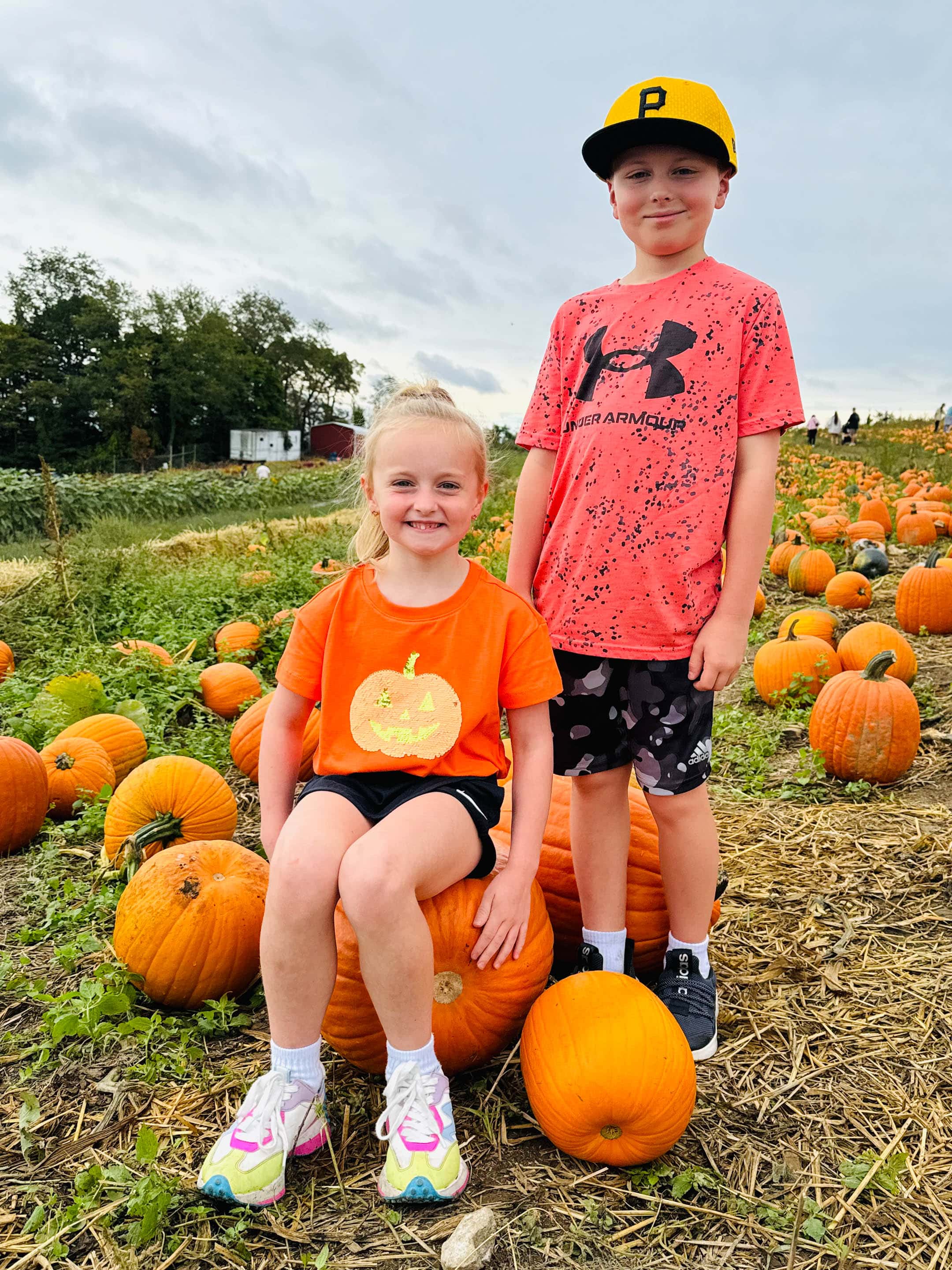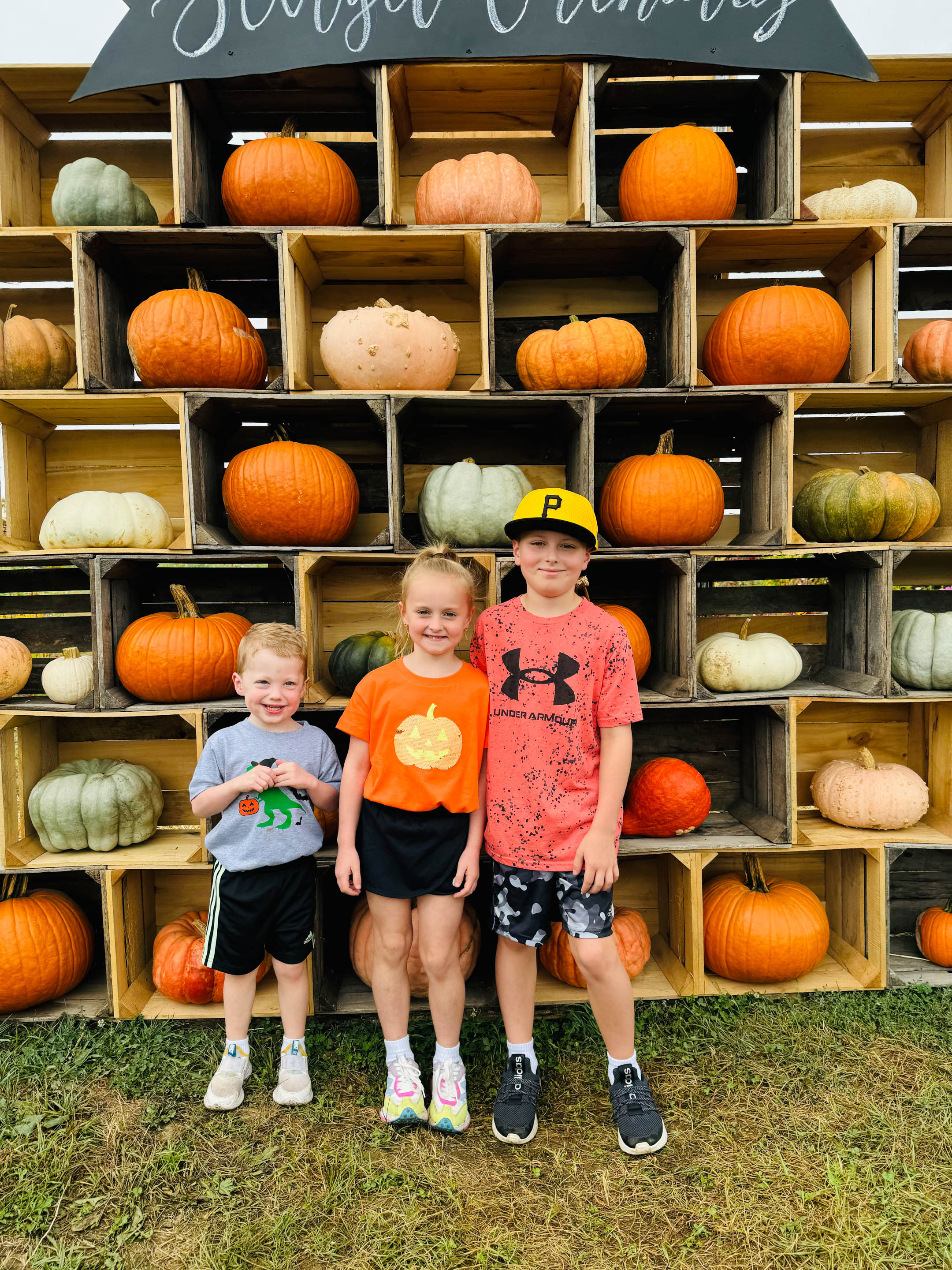 Can you tell me about the rug in the picture with the kids covered in pumpkins?