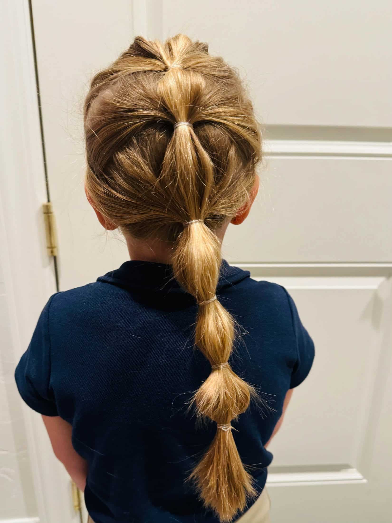Decided she wanted a bubble braid 24 seconds before walking out the door!