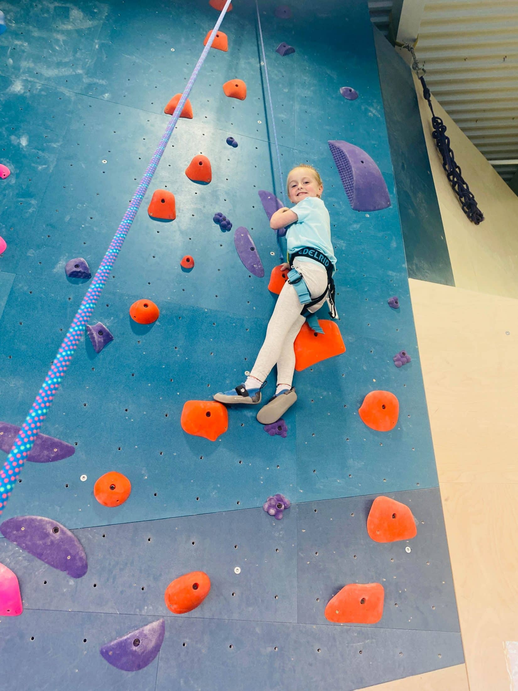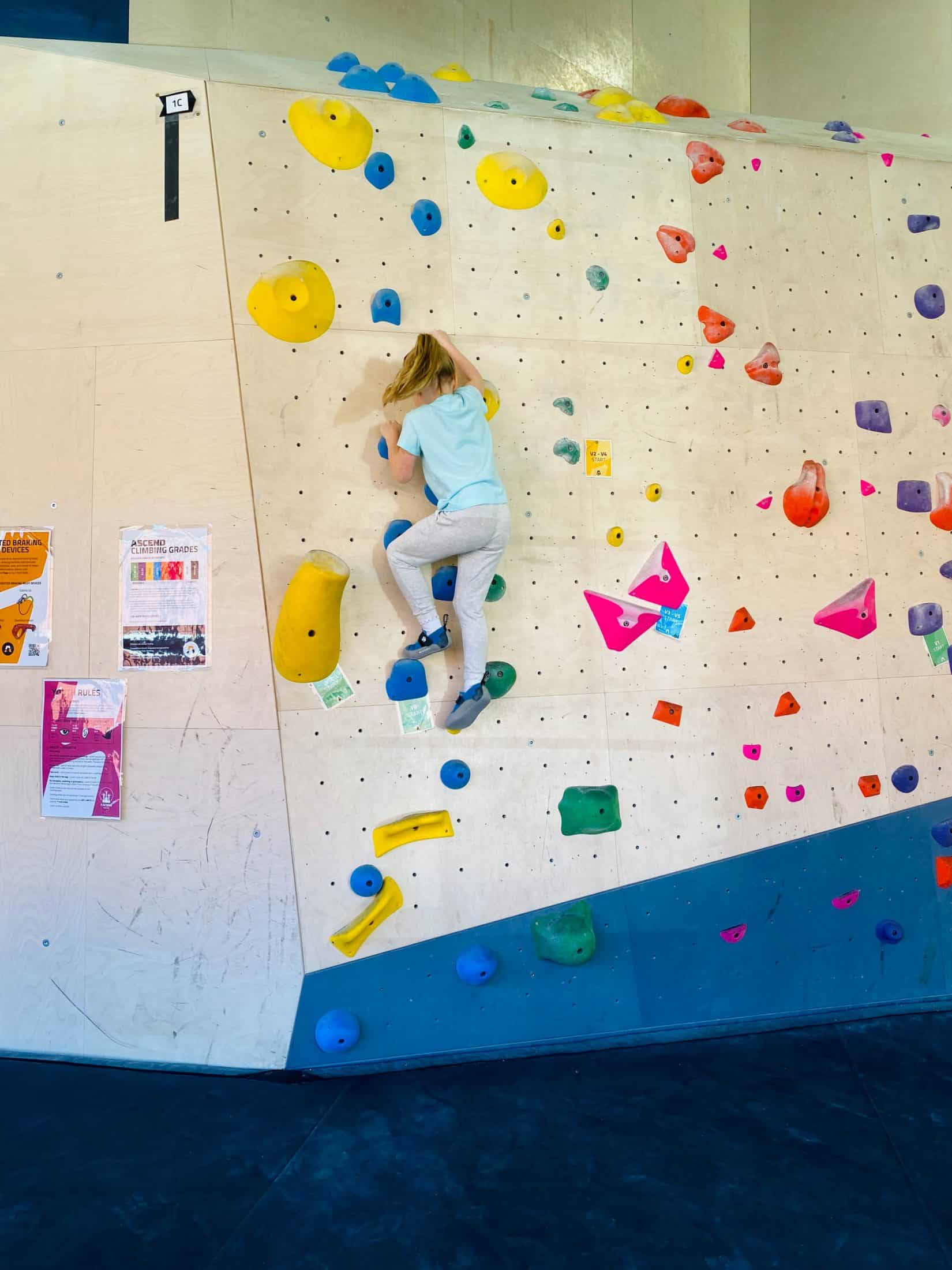 The kids were off school Friday… one of her gifts was going to the climbing gym!
