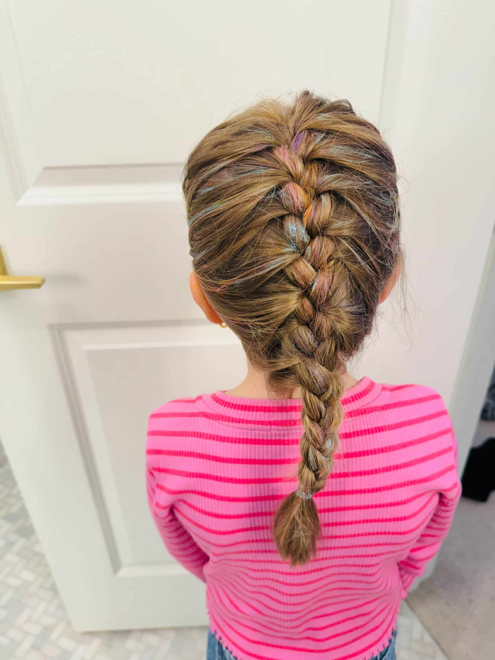 Emilia got so much hair chalk for her birthday – we tried to do a unicorn braid!