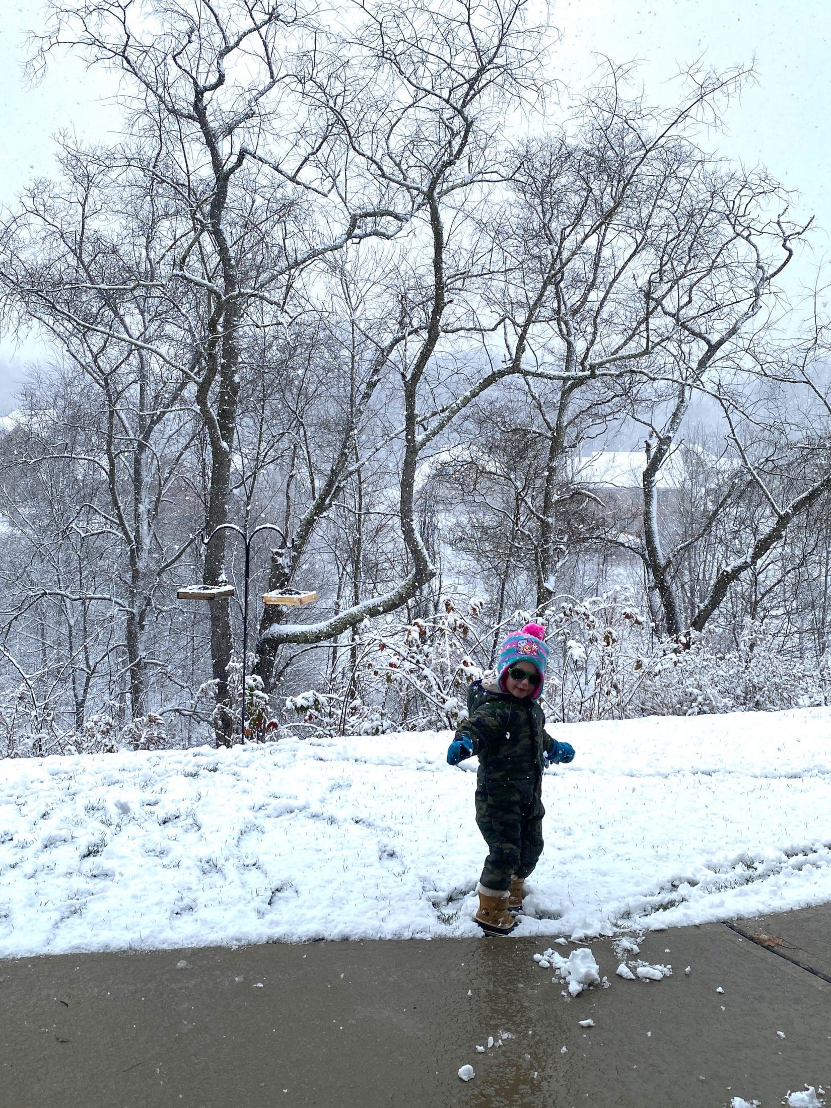 Took many walks in the snow! In Max’s old snowsuit, Max’s old boots, Emilia’s old hat… I love it!