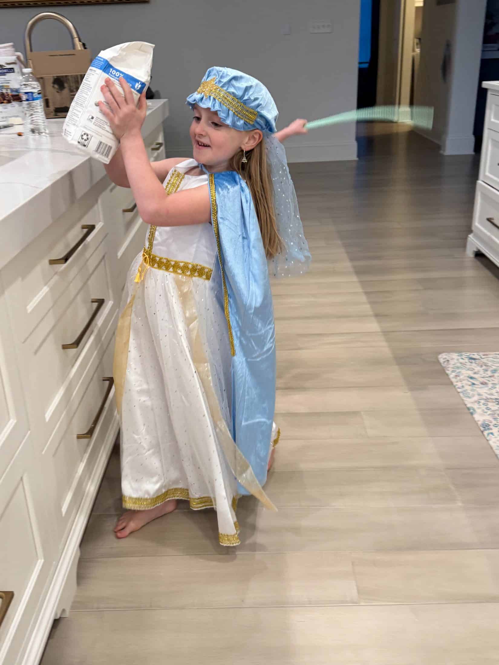 Emilia dressed as Mary for nativity day. She is obsessed.