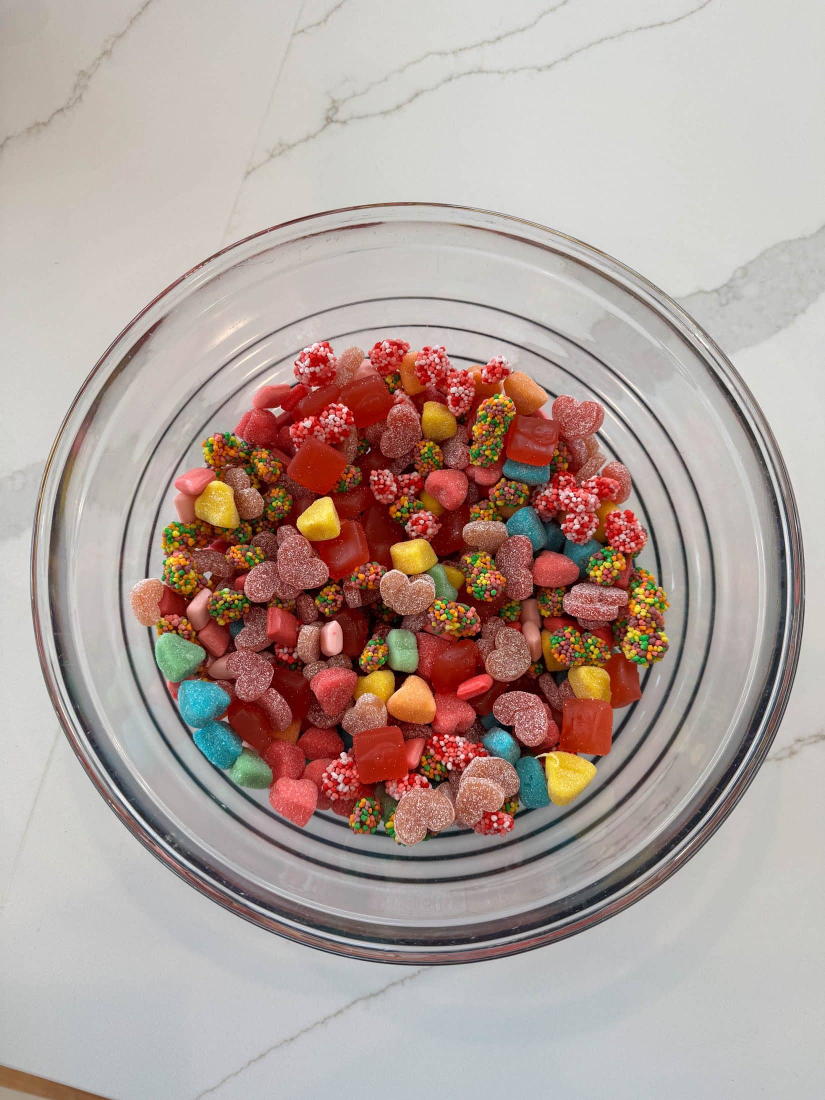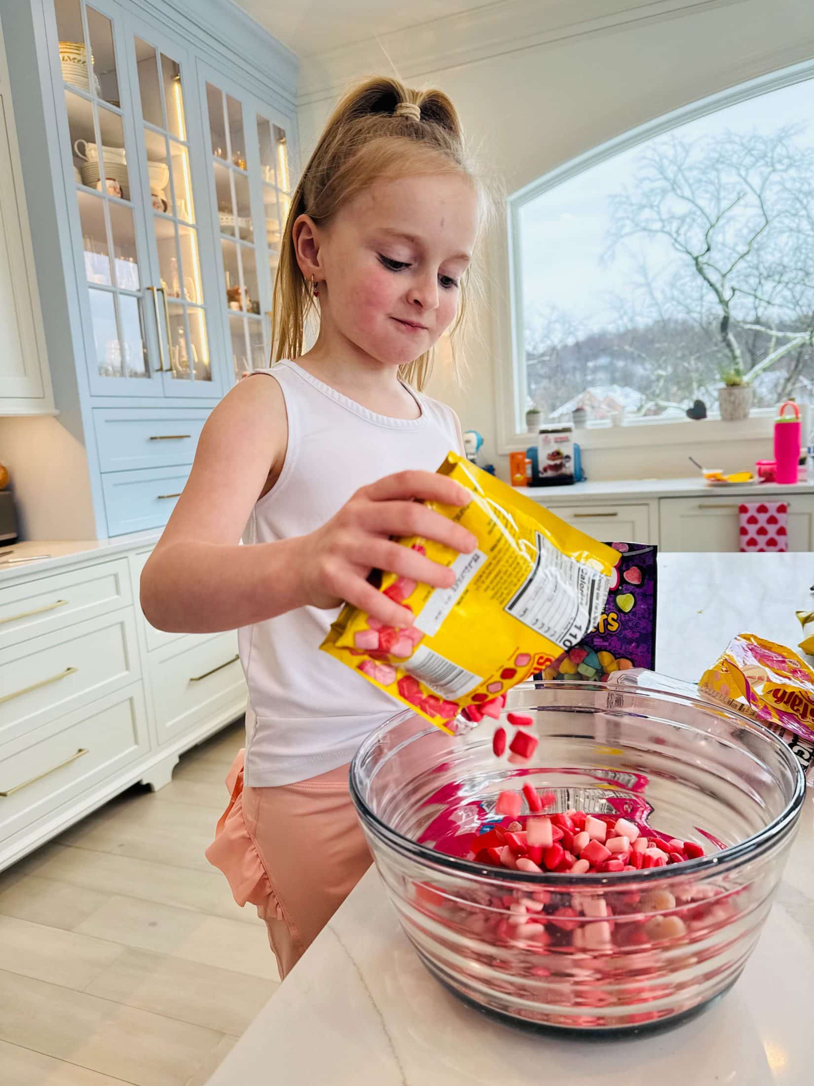 In between games, Emilia made a candy salad. She LOVES gummy candy and we rarely have it. I bought everything for her to makes this (she did it last year too) but everyone got sick. So we made it a day late!