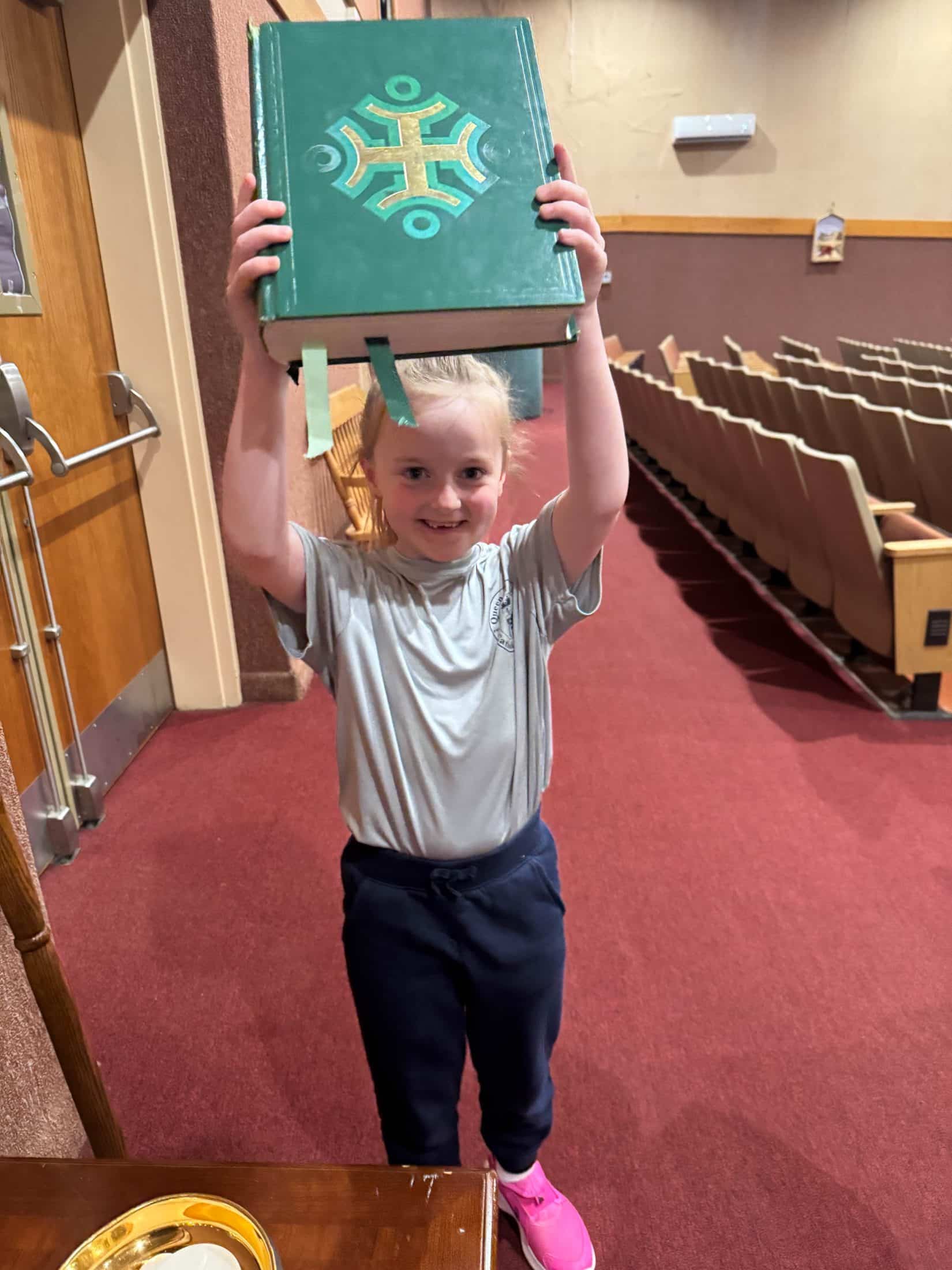Especially love 2 things about this: 1) Emilia reading at Mass. 2) Your baby taking a cuddly nap on you!