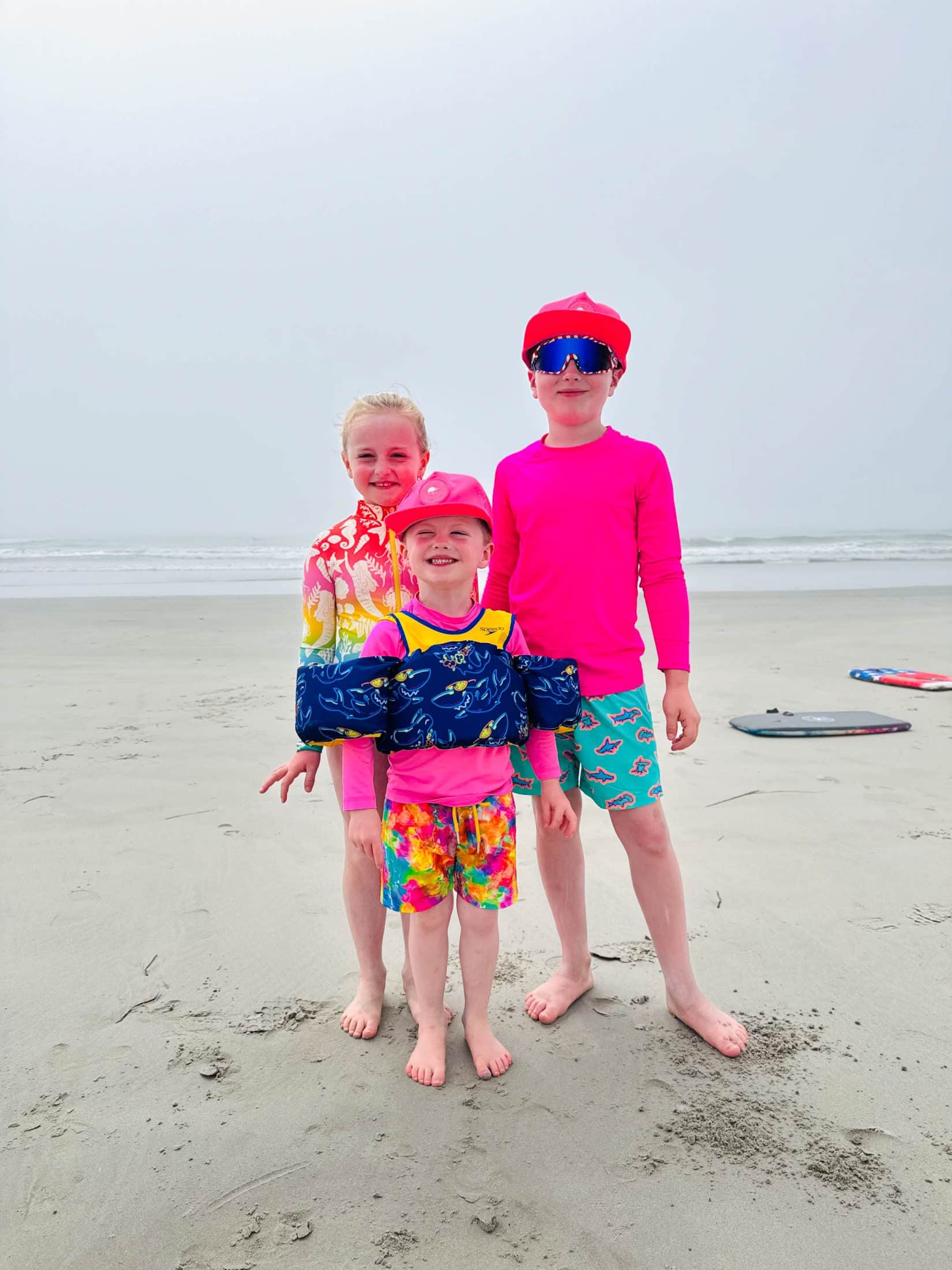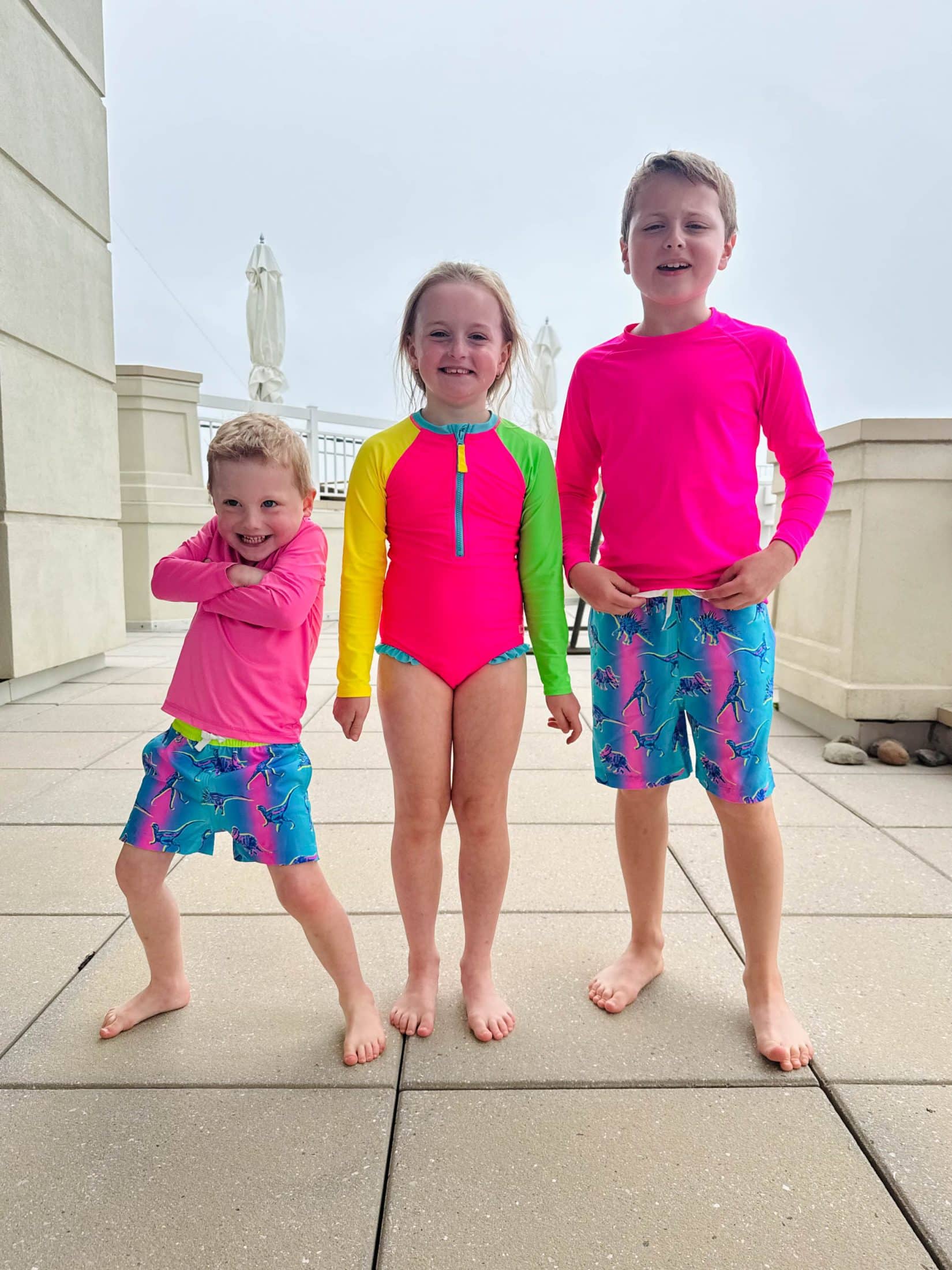 I can’t talk enough about the neon pink, green and yellow in the ocean, on the beach and in the pool. So easy to spot the kids ANYWHERE.