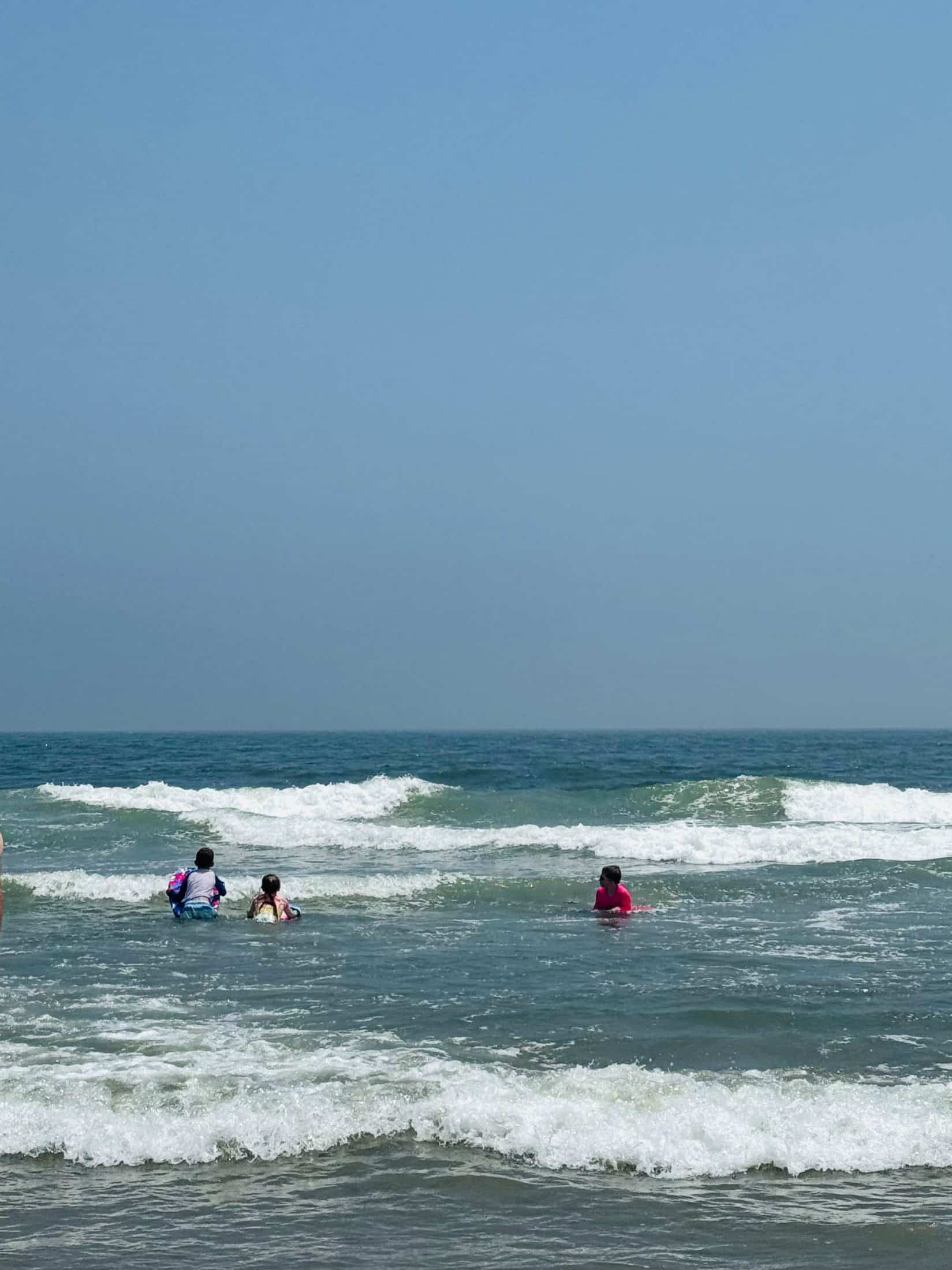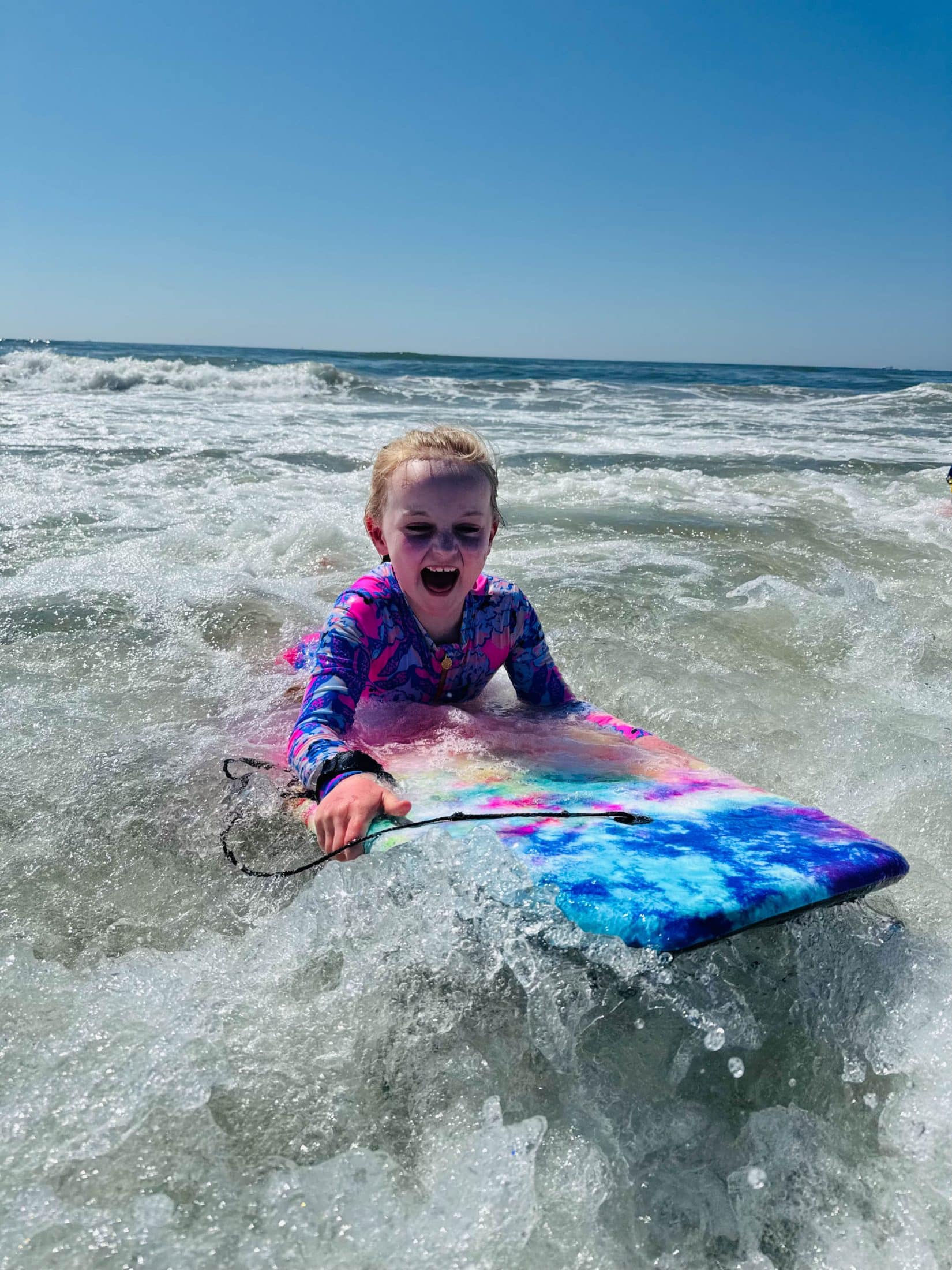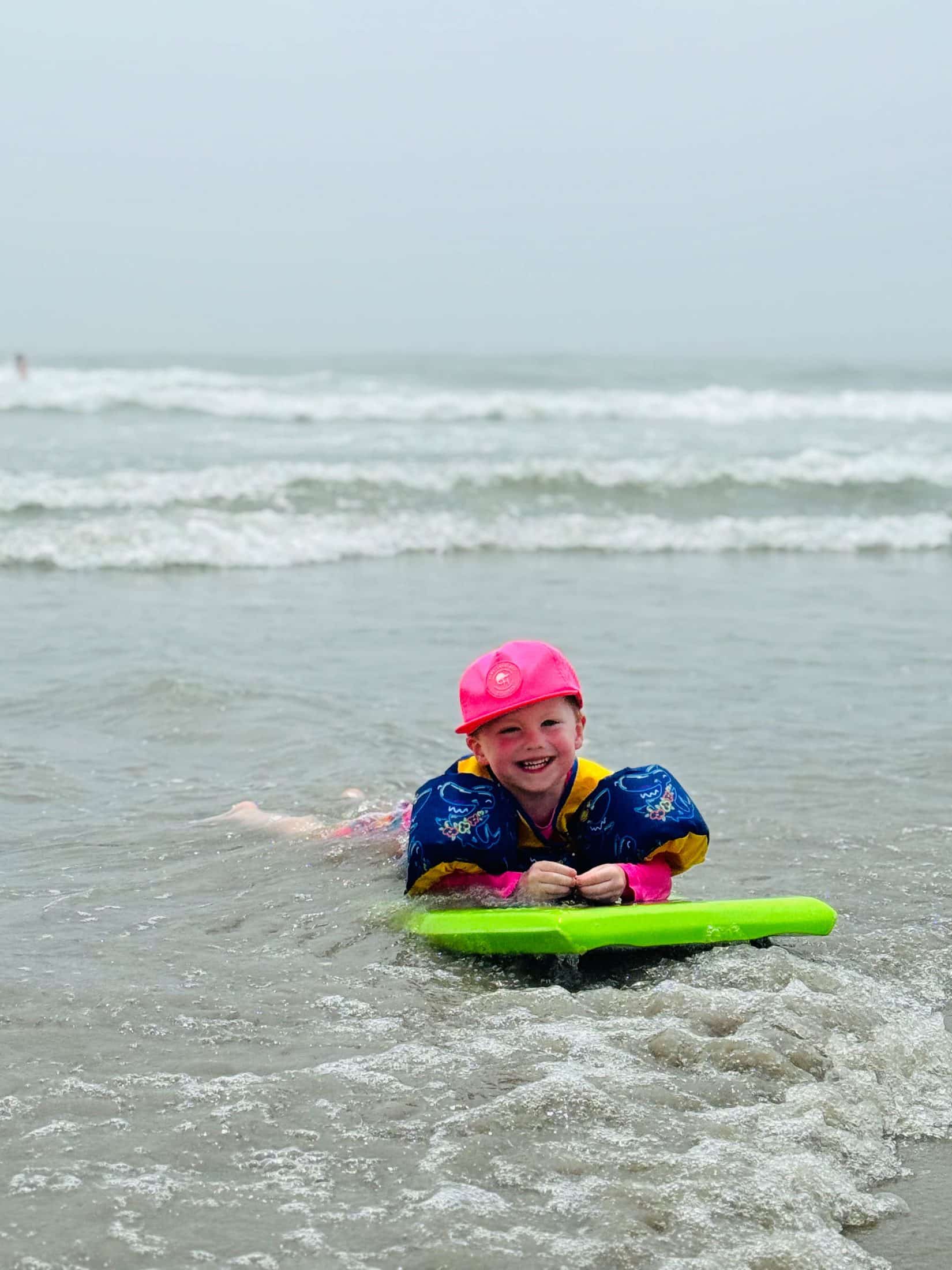 Emilia would stay in the ocean for hours. I had a very hard time keeping up with her face getting sun because she kept wiping her eyes and wiping it off.