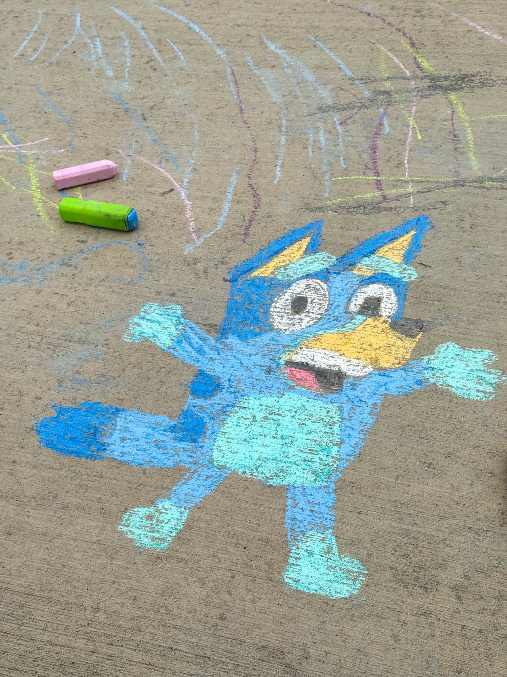 Then Eddie just casually freehanded this Bluey chalk art in minutes. He is SO talented at art.