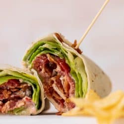 These BLT wraps with jalapeno ranch are one of my favorite spins on the classic BLT. They are super delicious and wonderful to have for lunch in the summer! Crunchy, creamy, juicy from the tomatoes and so satisfying.