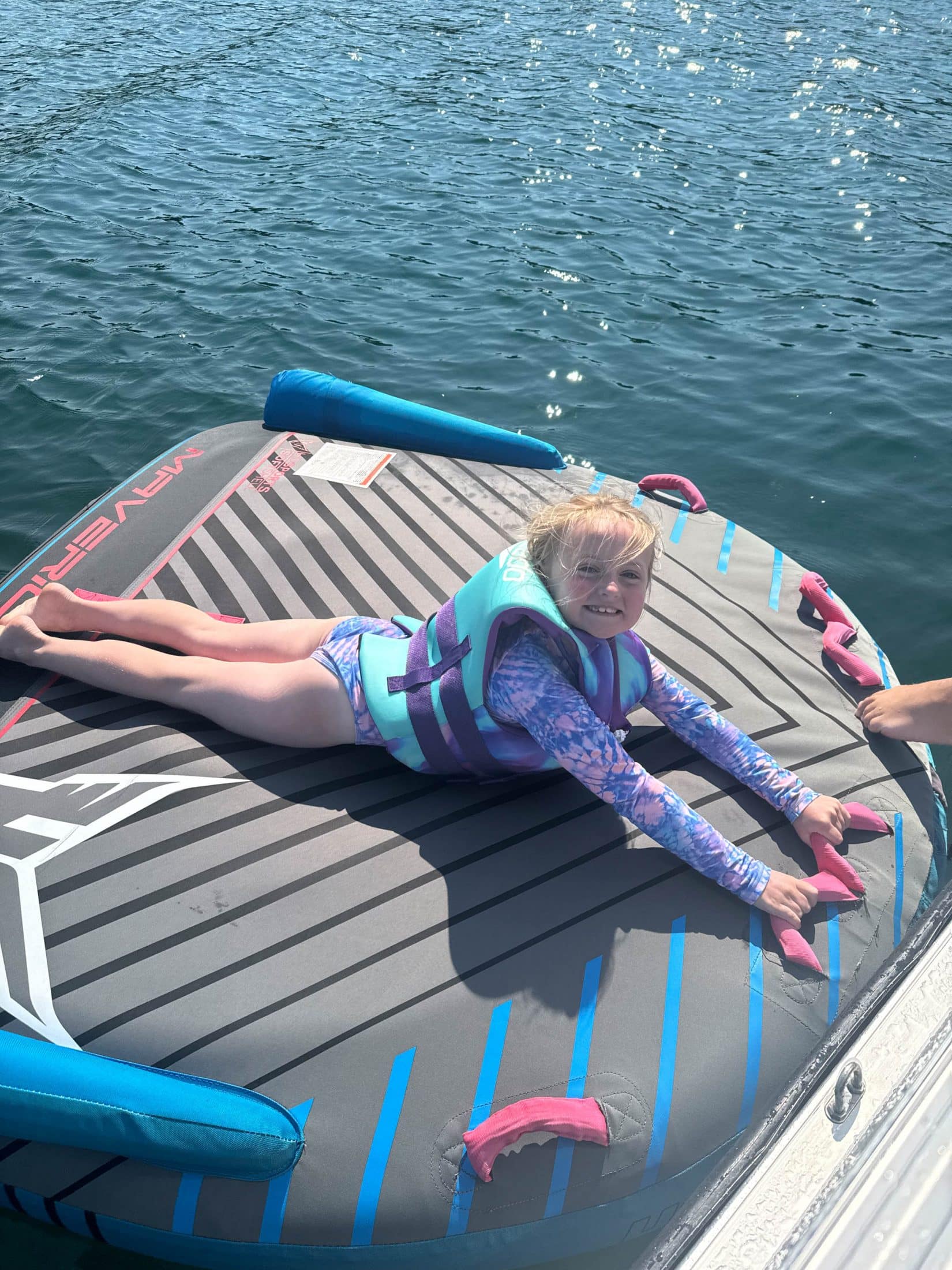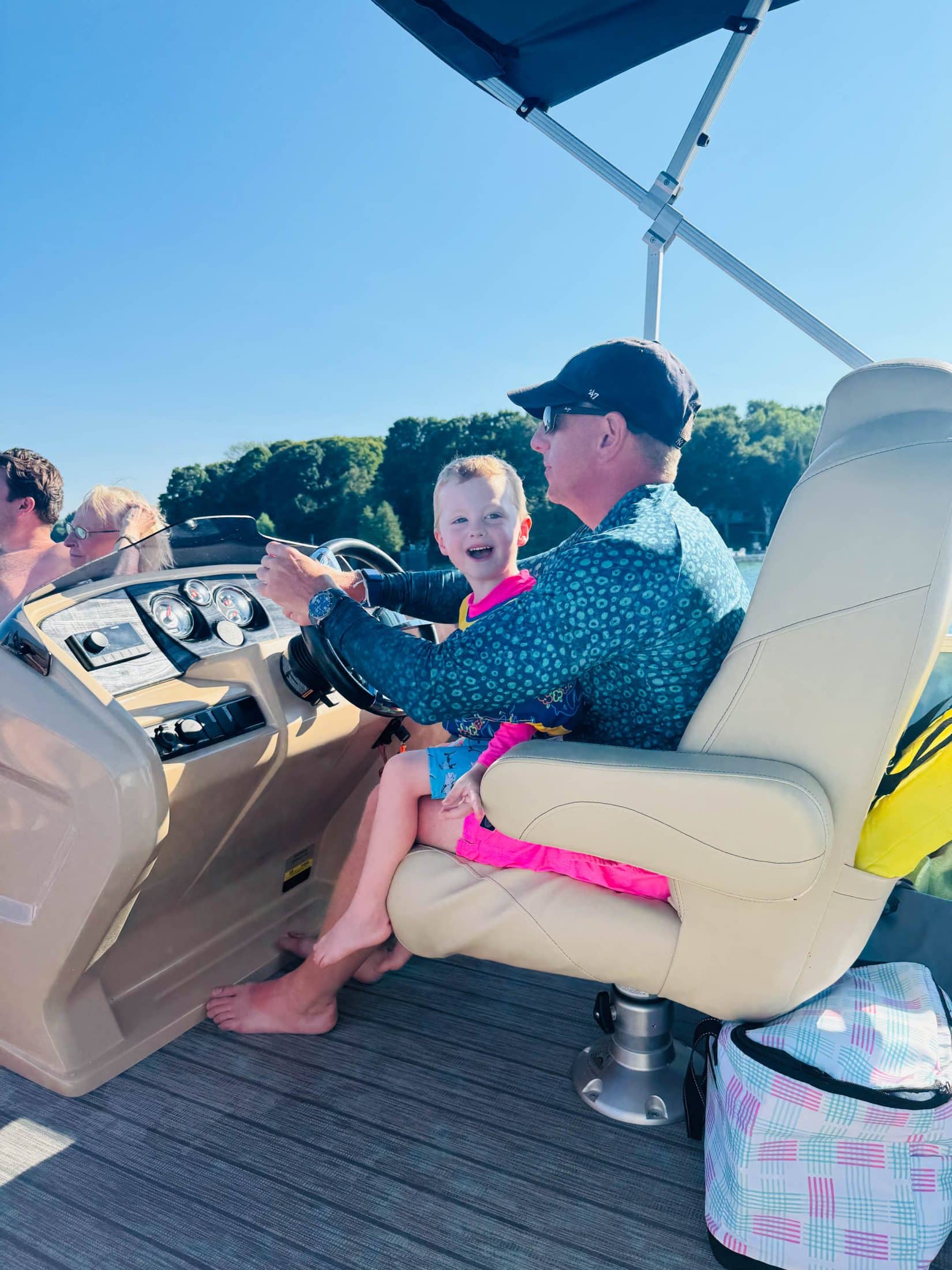 On the boat and ready to go tubing!