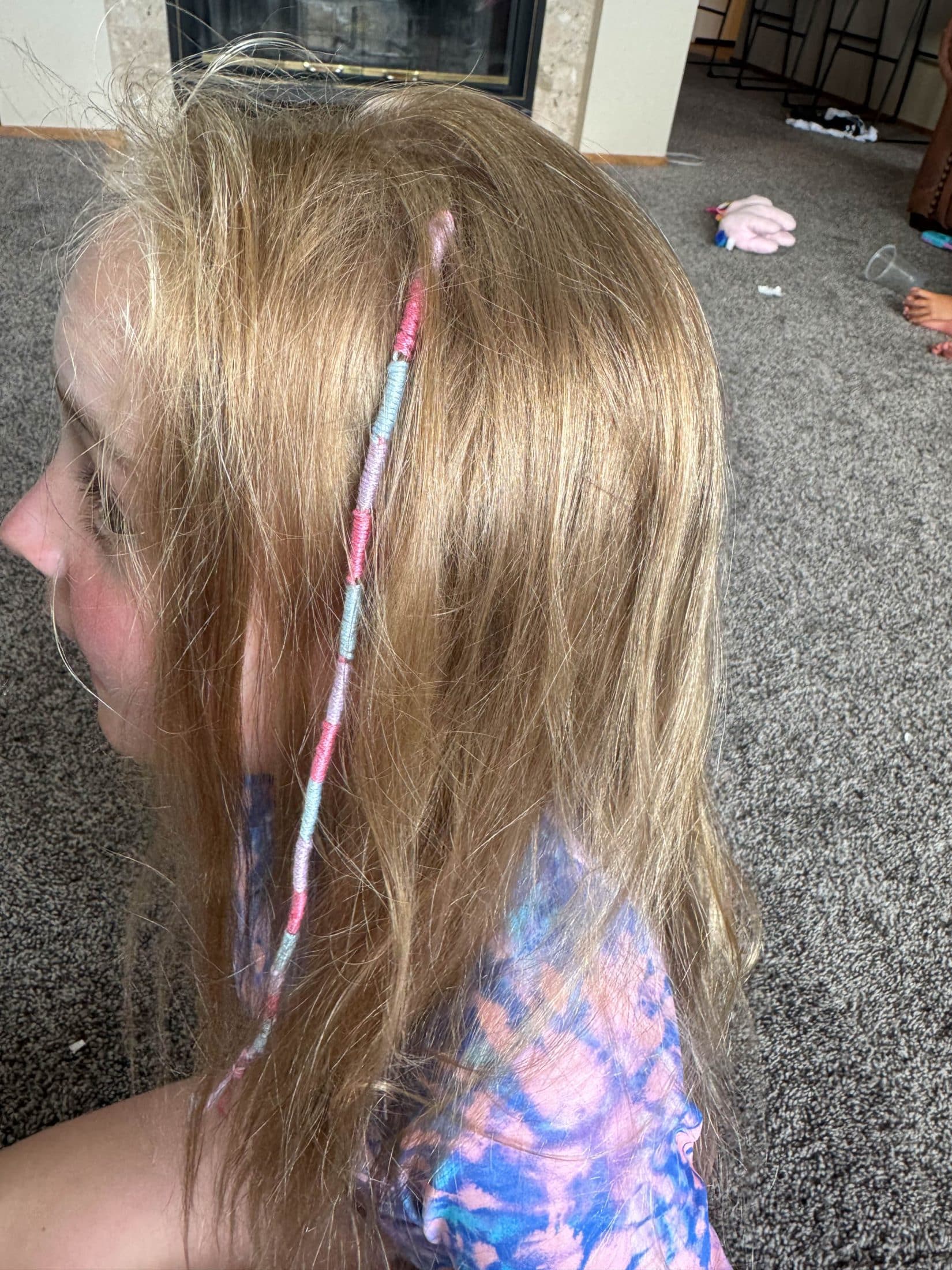 We did hair wraps on the girls! Hello 1990s!