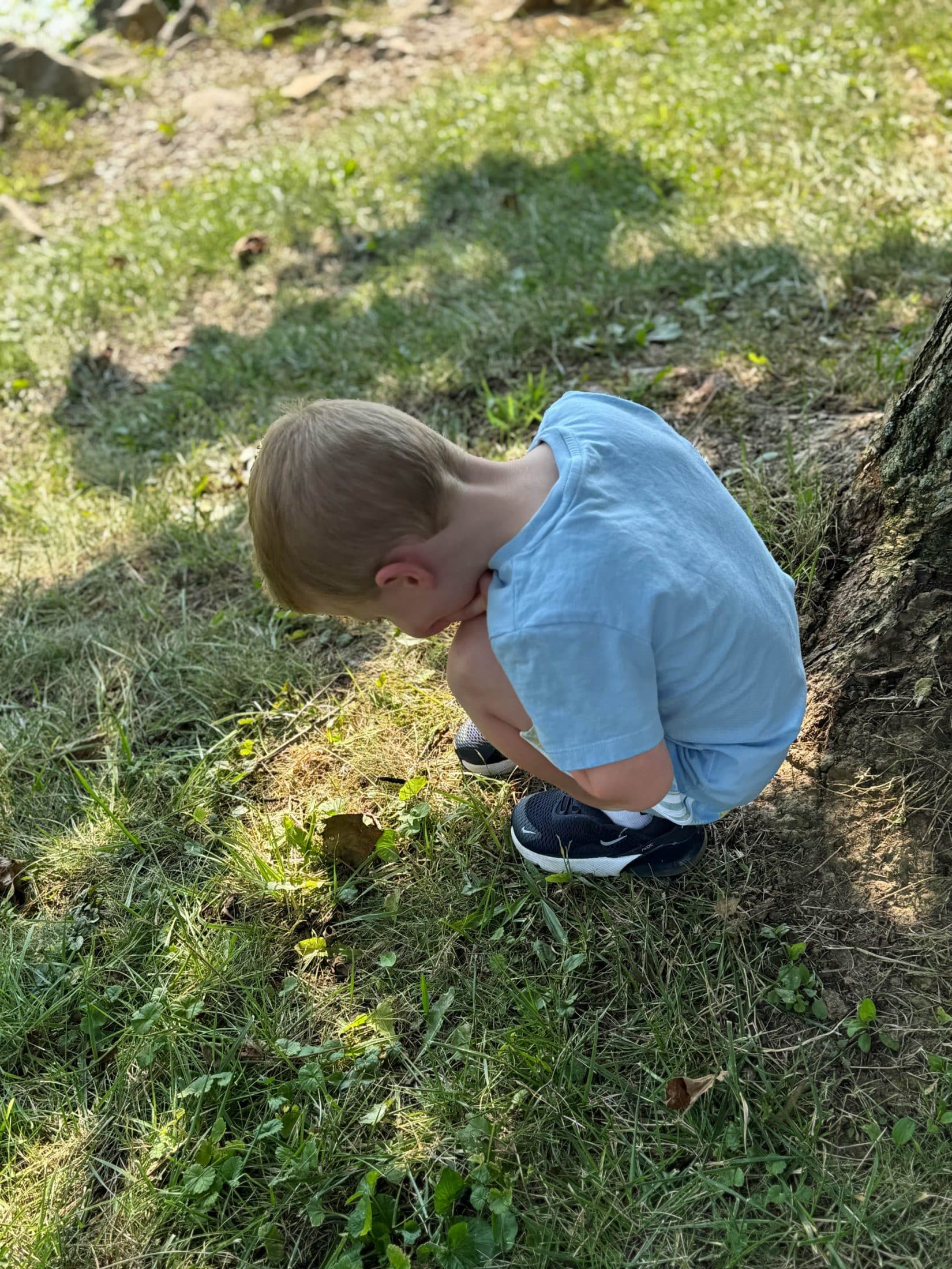 Little nature lover watching a caterpillar.