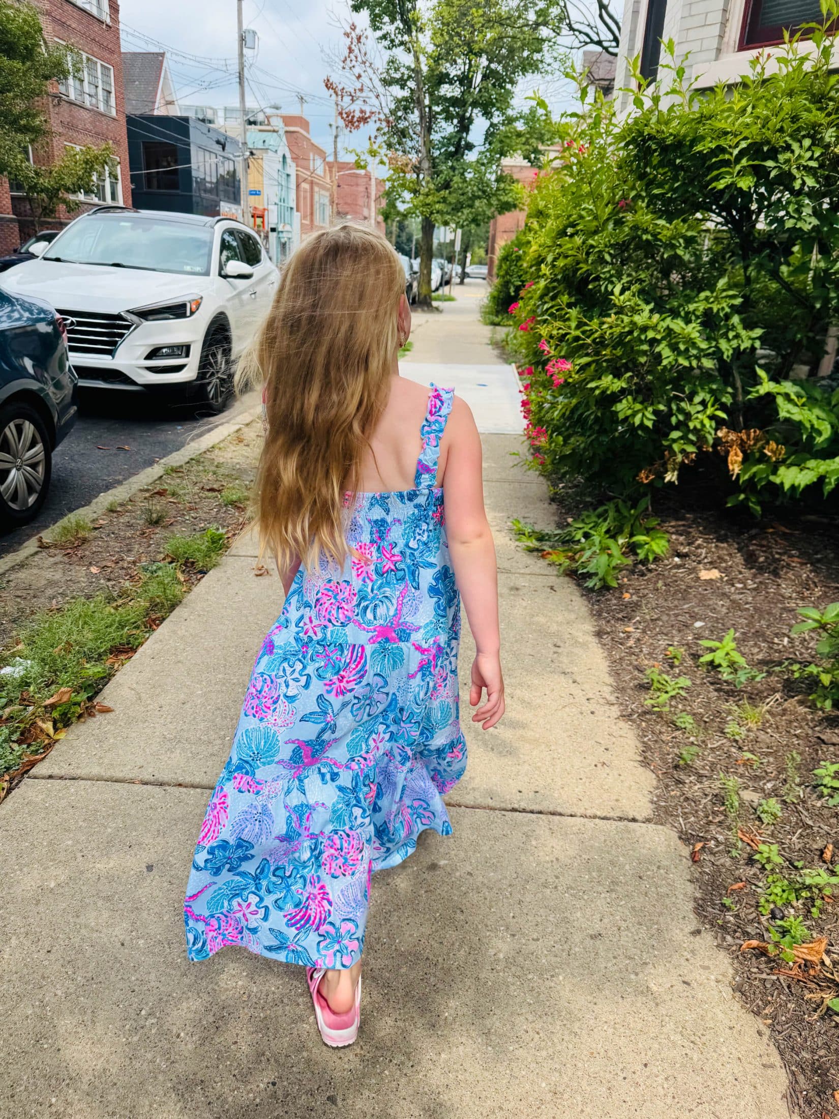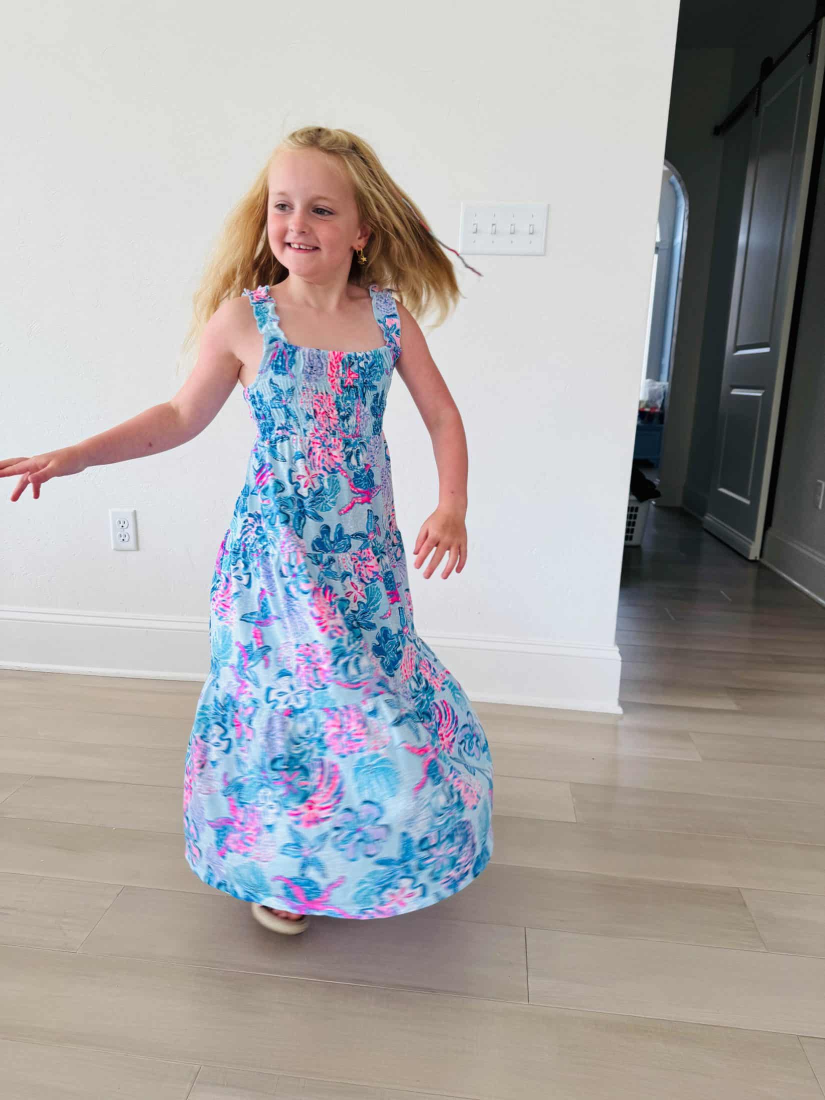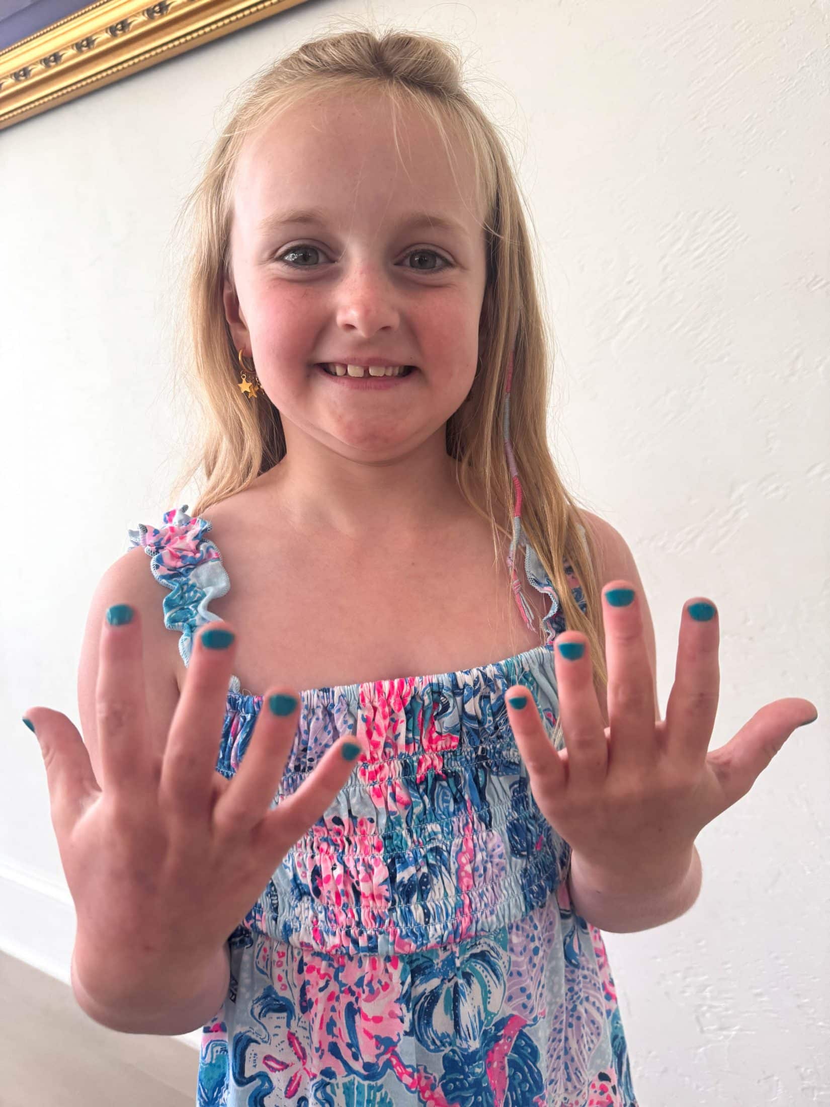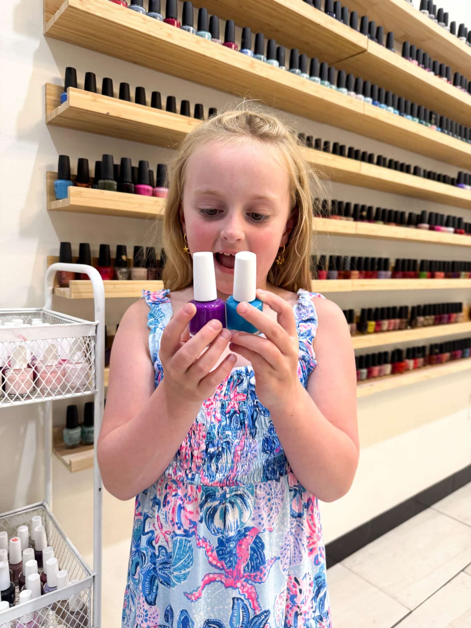 She picked this dress to coordinate polish colors.