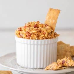 A few other italian spices round out the dip. The finely grated cheese makes the texture perfect and we love serving it with chips, crackers, pretzels, veggies – really anything!