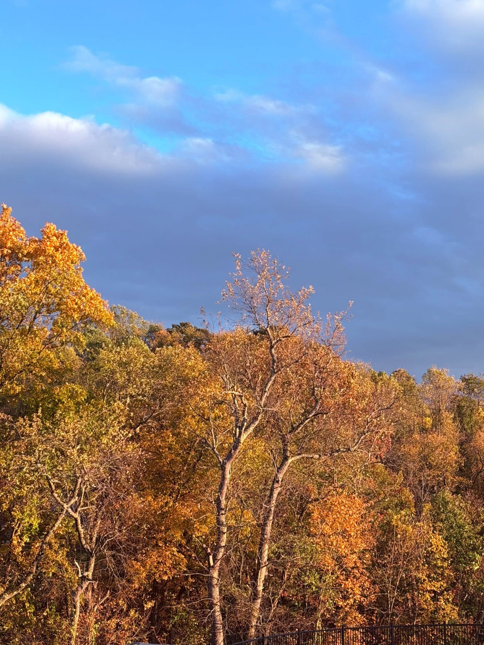 Out the kitchen window.