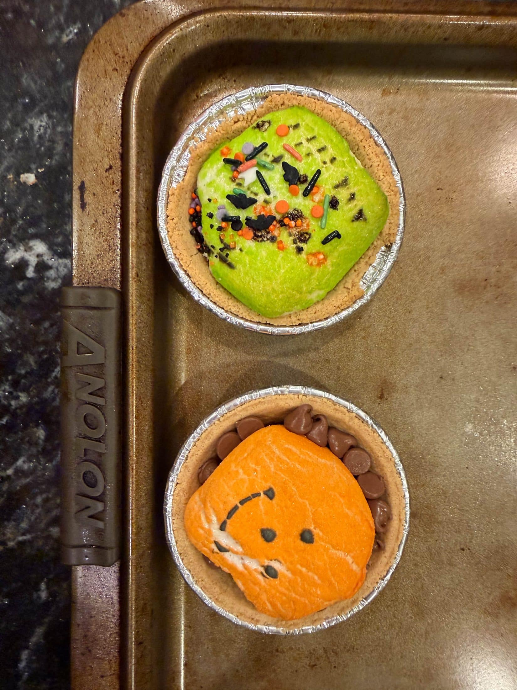 Mini Halloween s’mores pies.