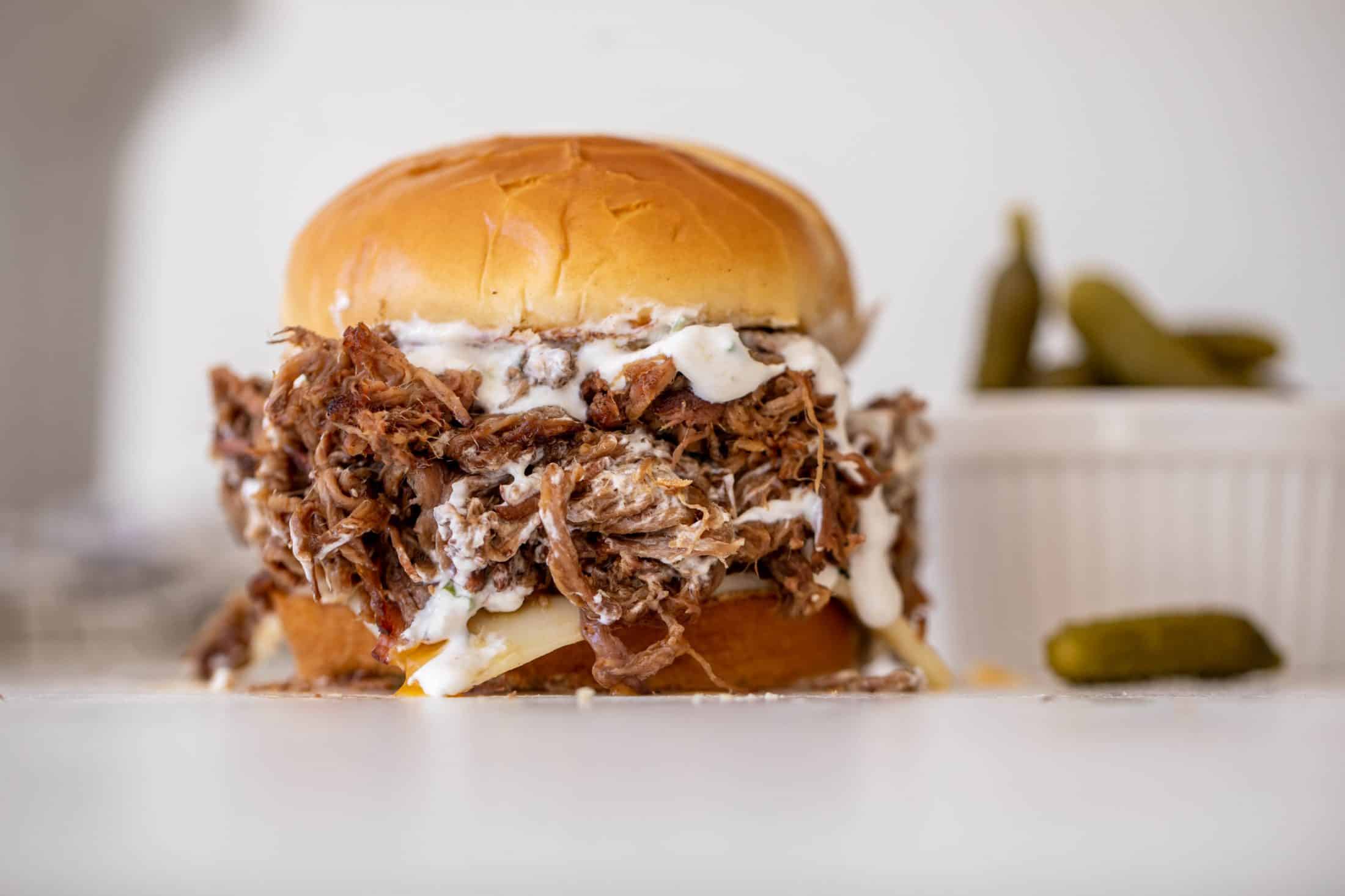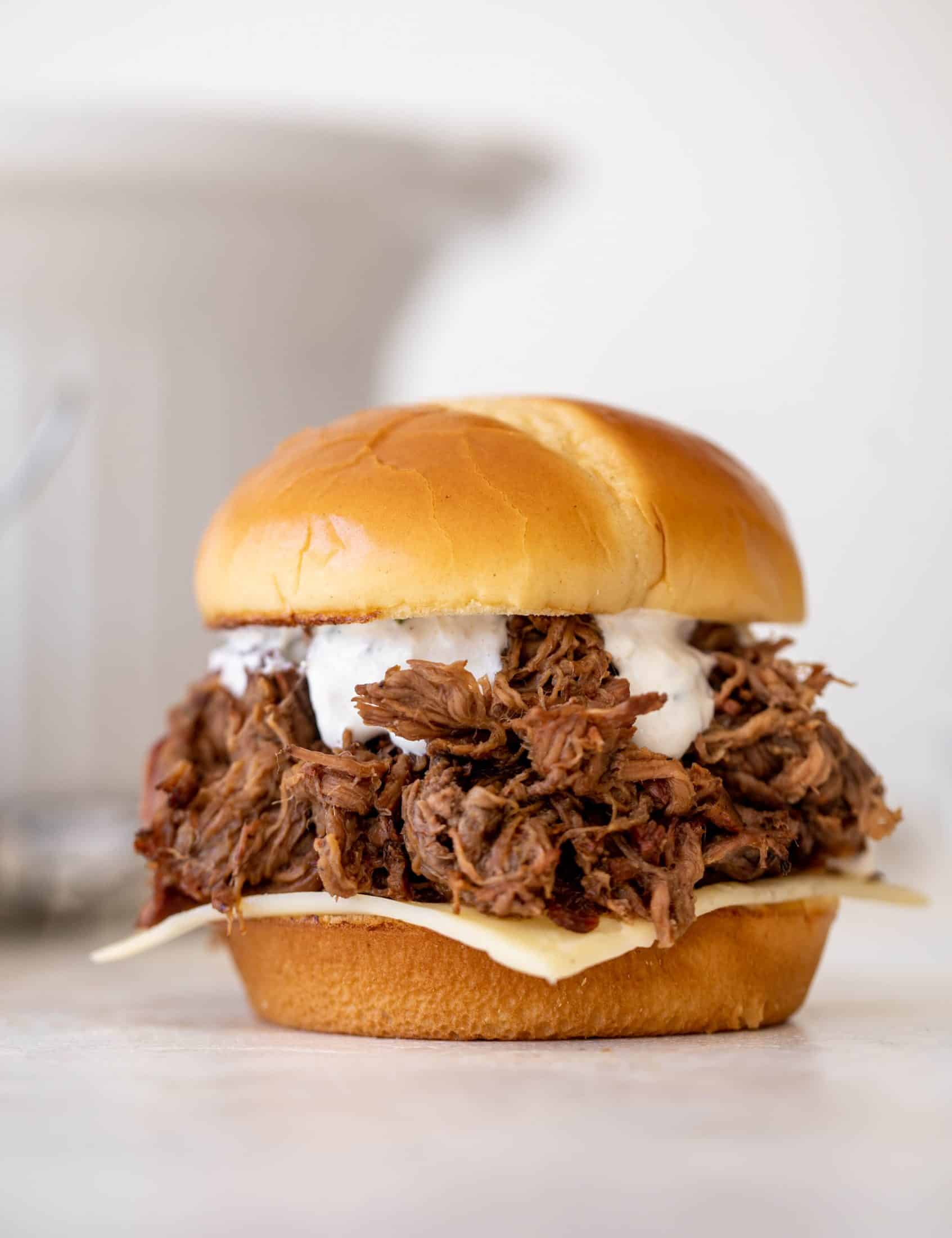 - To serve, pile high on a bun with sharp cheddar and horseradish sauce! You can also serve it over mashed potatoes, in wraps, with grains, etc.