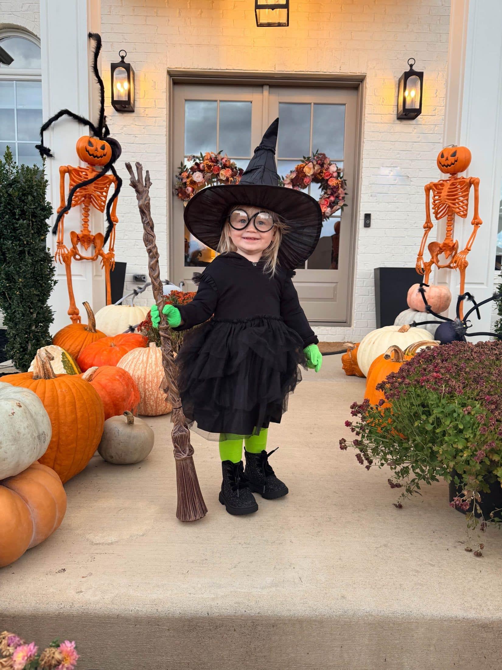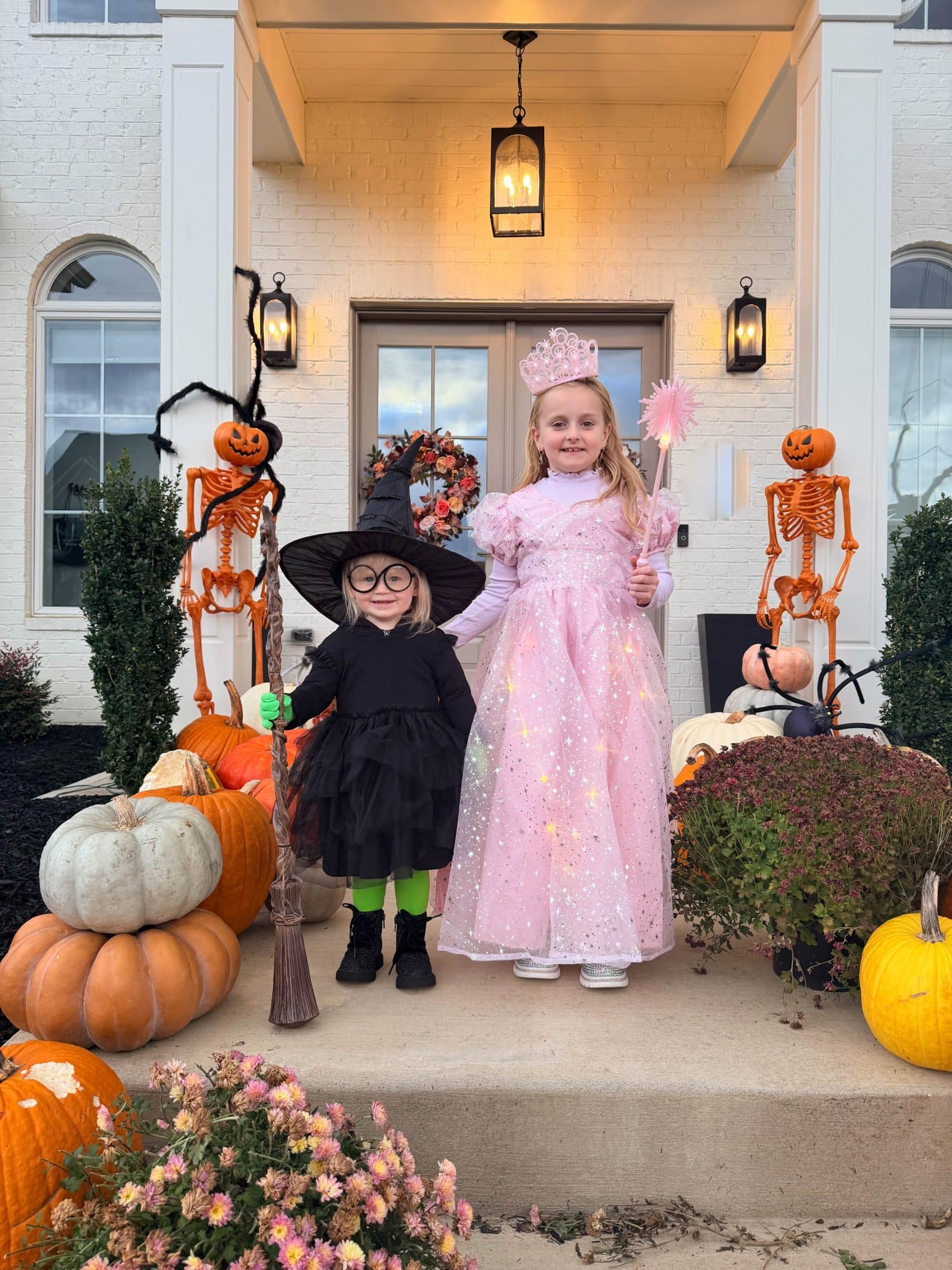We did a little switch up for school because she was afraid her dress was too long and poofy to deal with in class. Elphaba from her closet!