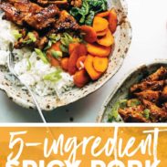 Maybe it’s because of Sauce Week exhaustion (a very real and good thing), or maybe it’s just because 5 ingredient recipes are always good – but either way, I am really feeling this spicy pork this week.