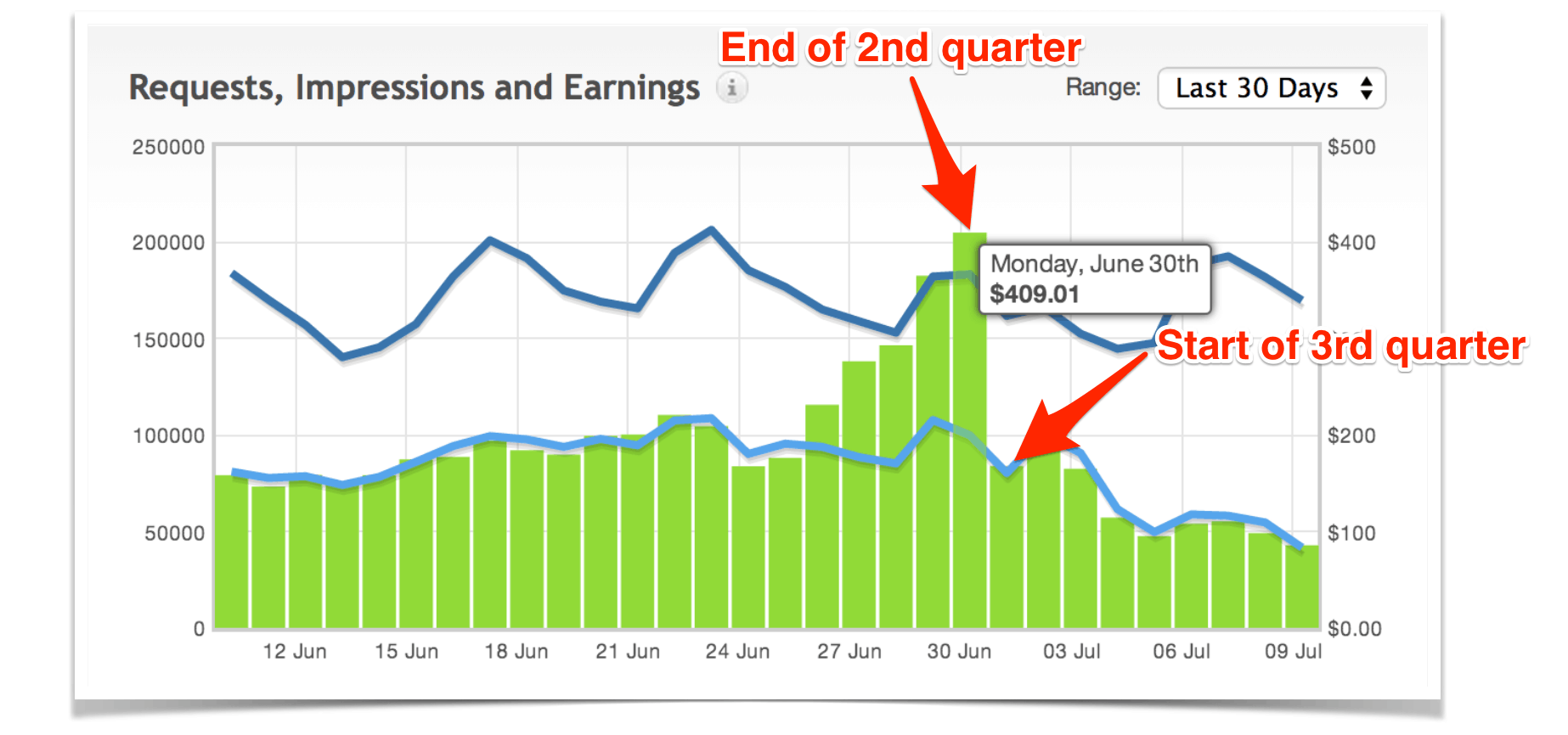 Hopefully, with this knowledge, you’ll be less like to stress out if your ad revenue drastically changes from one quarter to the next, and less stress = more productivity, and more productivity = more awesome content, and more awesome content helps you grow your blog.