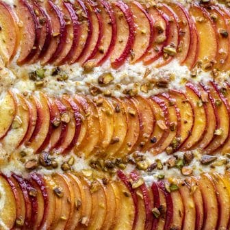 This peach puff pastry is spread with mascarpone cheese and topped with crushed roasted pistachios. It’s flakey, sweet, savory and wonderful! It can be...