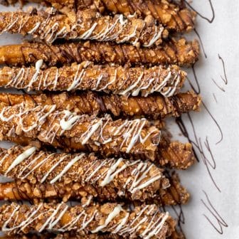 These caramel pretzels will be your new favorite holiday treat! Crunchy pretzels dipped in gooey caramel, rolled in crisp toffee chips and drizzled in...