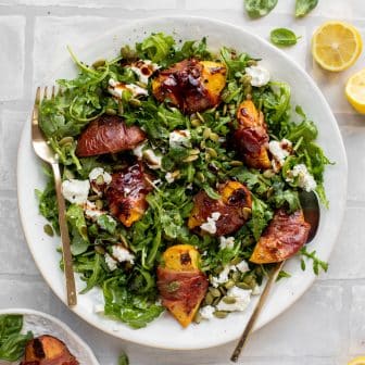 These grilled prosciutto wrapped peaches make me so darn happy. I mean, just look at how cute they are!