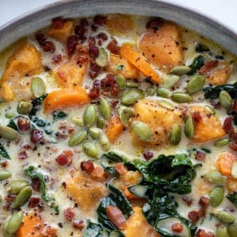 This sweet potato chowder is a huge hug in a bowl for you! Because… Monday. Yes yes. We all need a hug today.