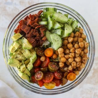 Today is the day we fall in love with this chickpea bacon ranch salad. I mean, who doesn’t love a chopped salad?!
