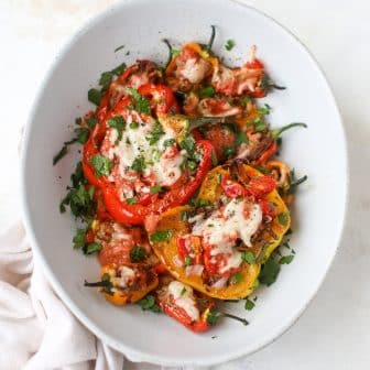 Pulled pork stuffed peppers might be our new favorite dinner!! You guys. These are SO flavorful. Super easy, if you have leftover pulled pork....